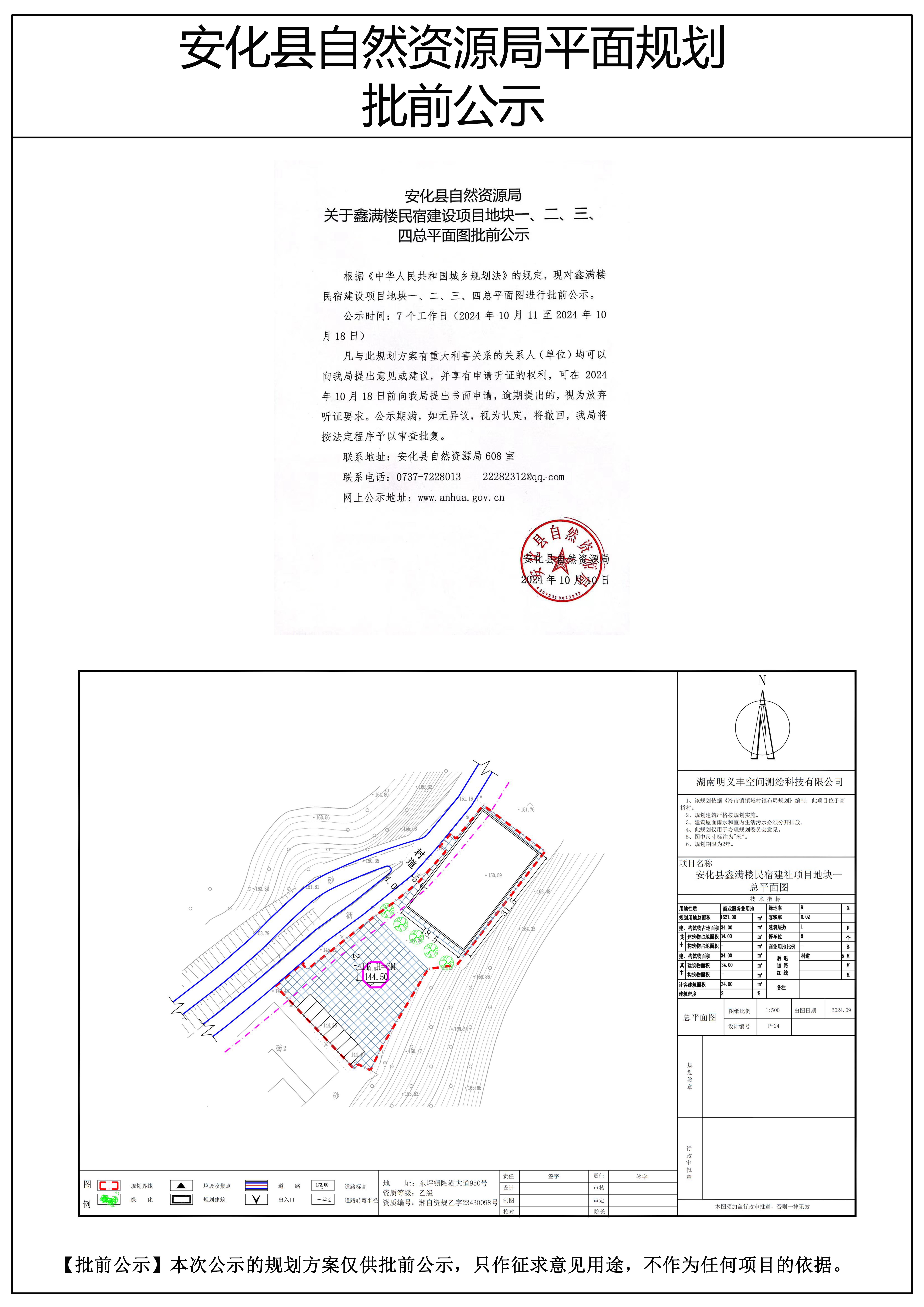 鑫满楼民宿建设项目地块一、二、三、四总平面图批前公示