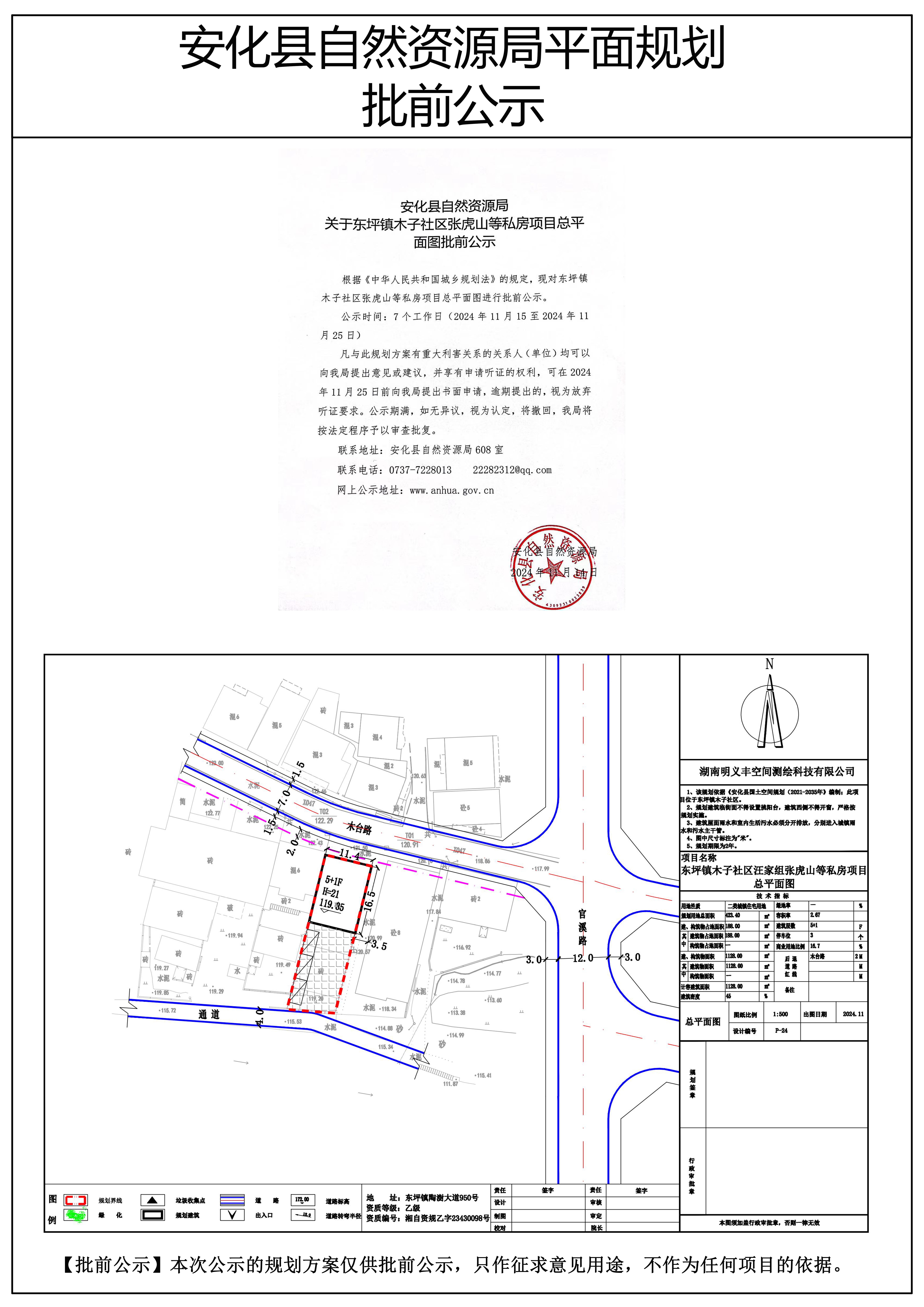 东坪镇木子社区张虎山等私房项目总平面图批前公示