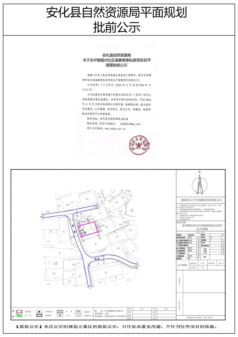 东坪镇酉州社区谌春艳等私房项目总平面图批前公示