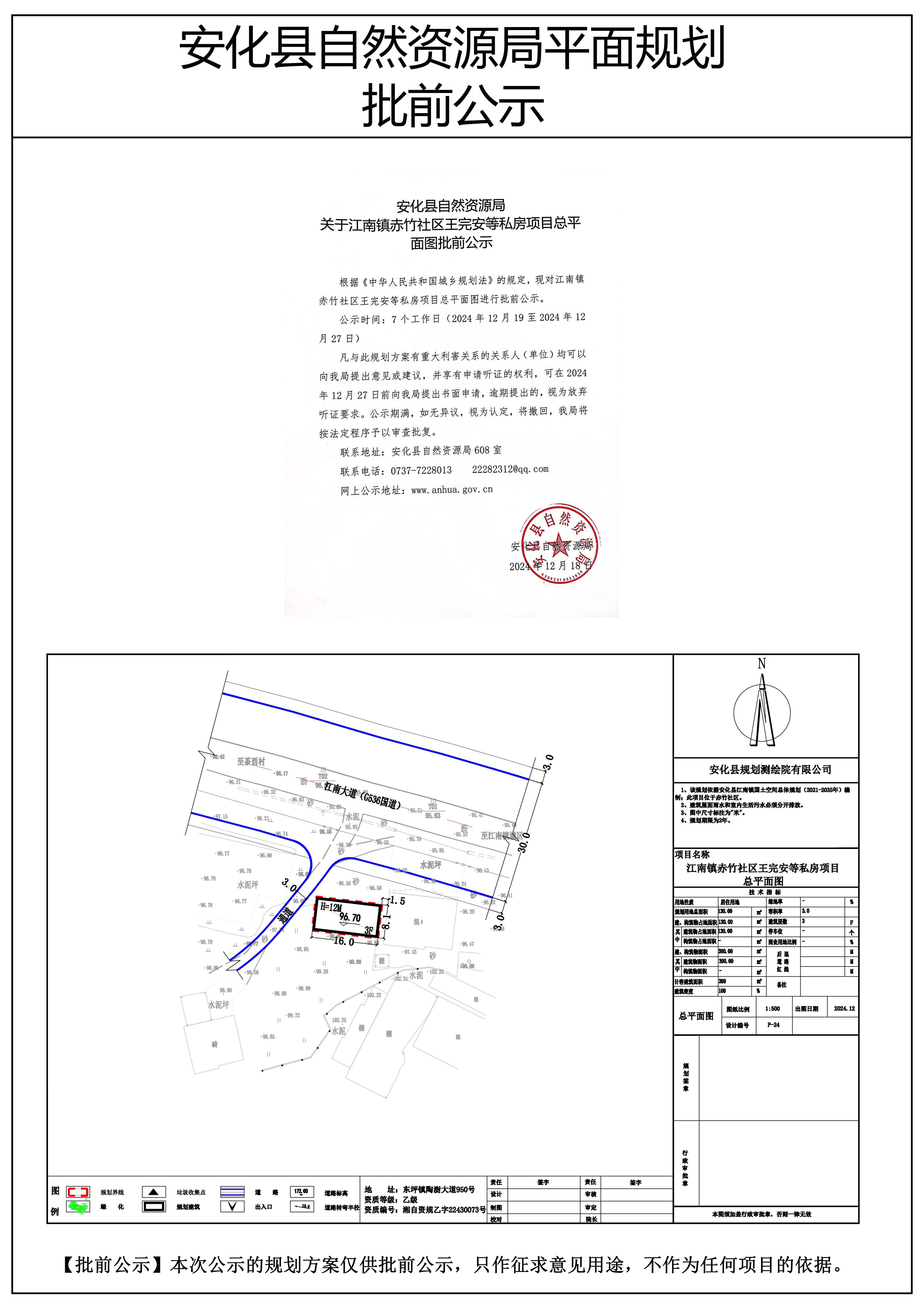江南镇赤竹社区王完安等私房项目总平面图批前公示