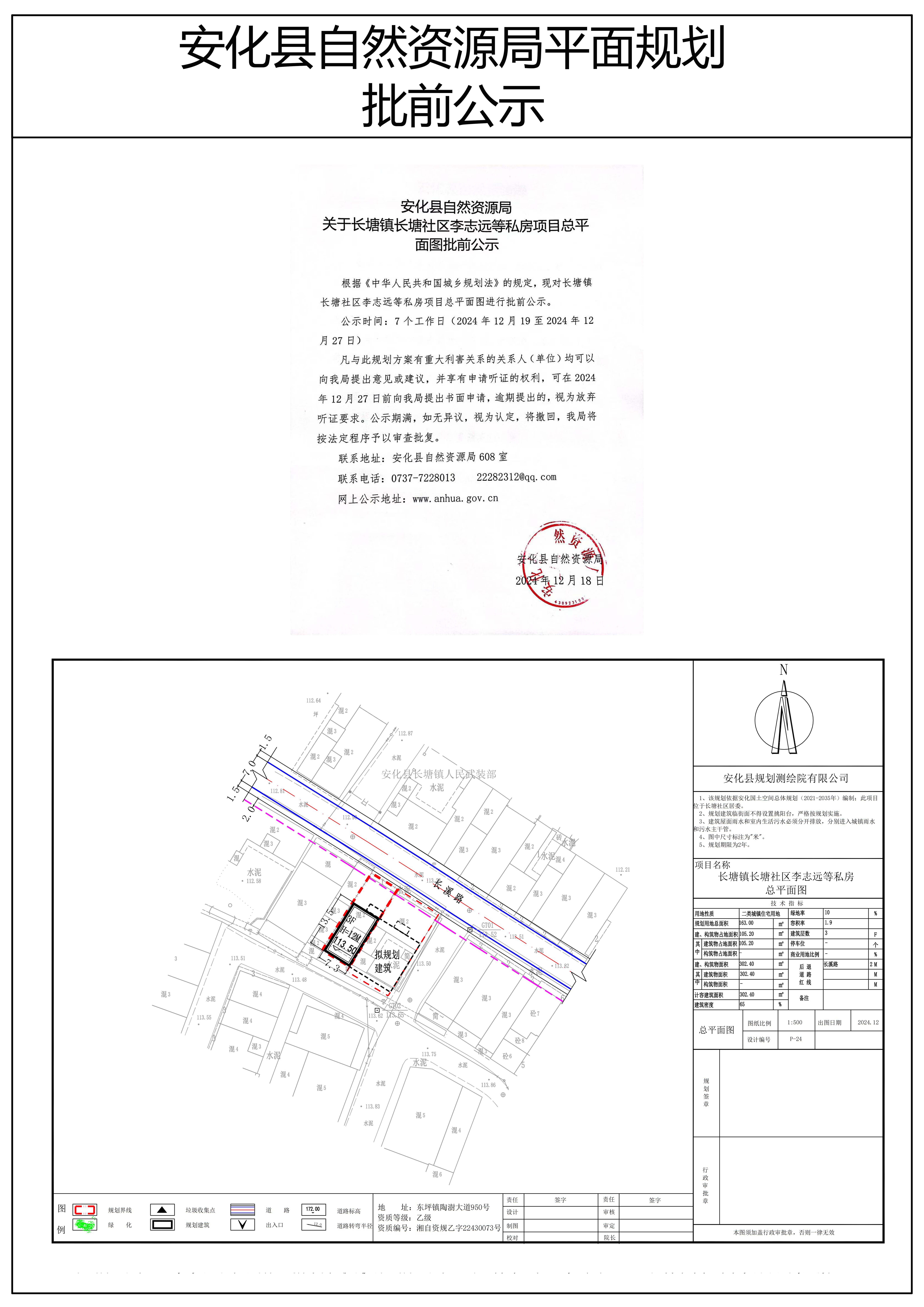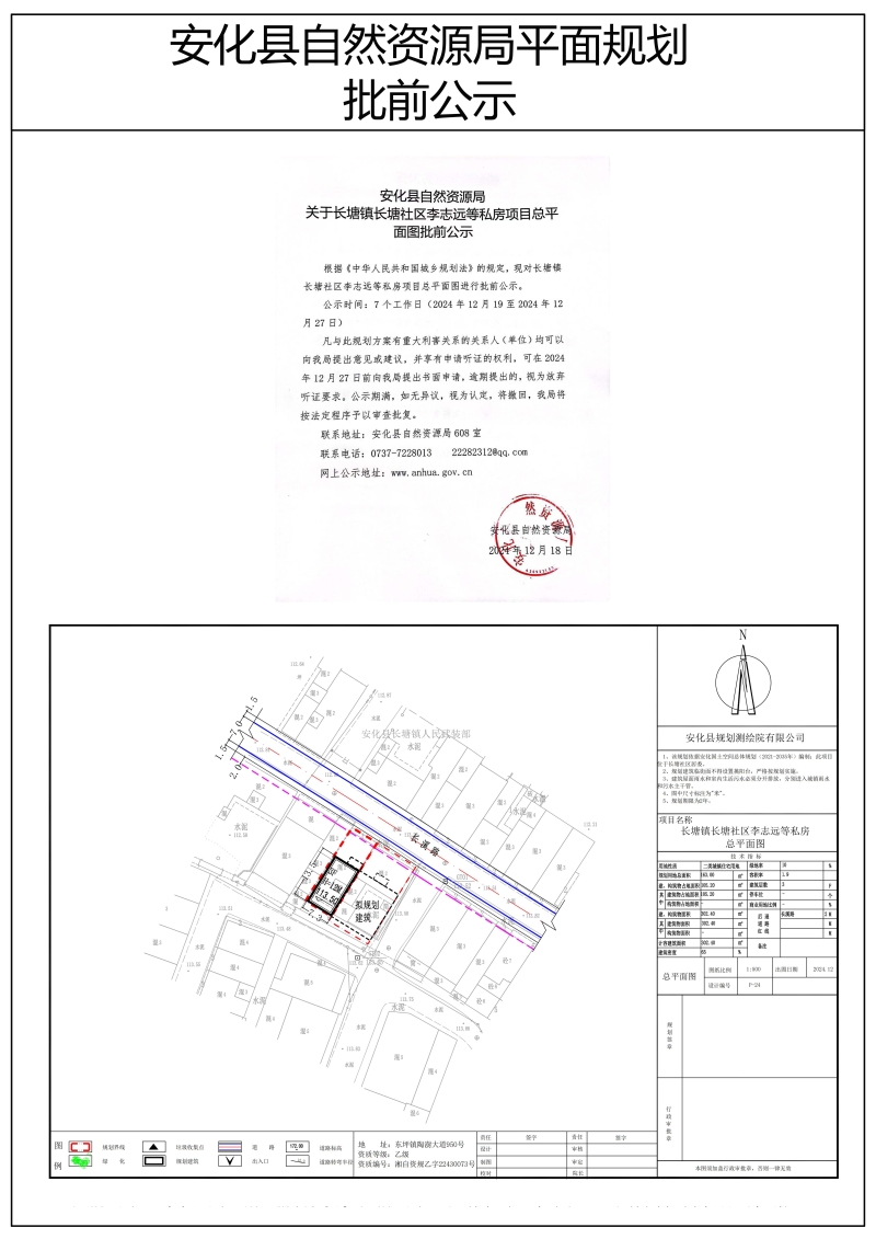 长塘镇长塘社区李志远等私房项目总平面图批前公示