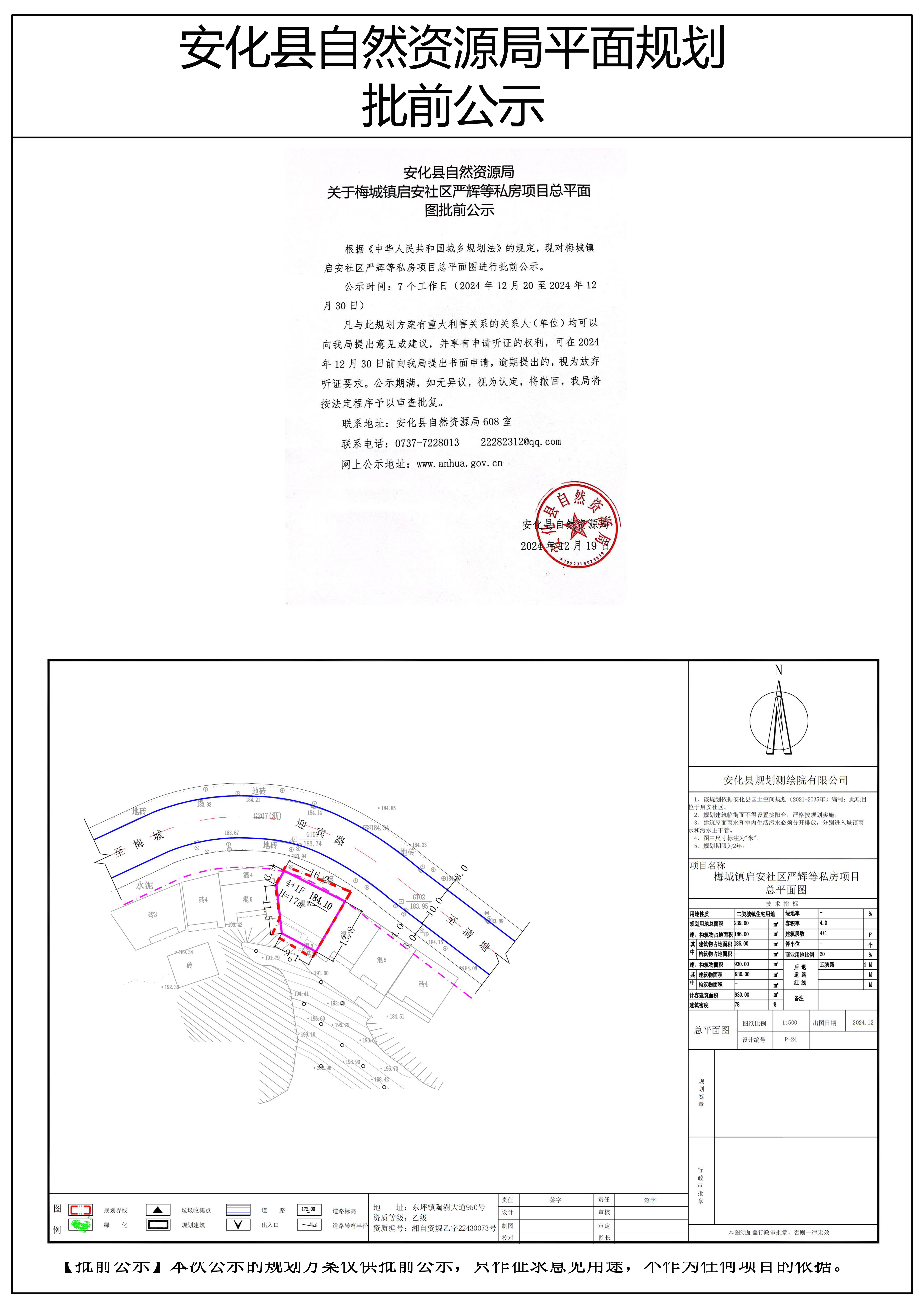 梅城镇启安社区严辉等私房项目总平面图批前公示