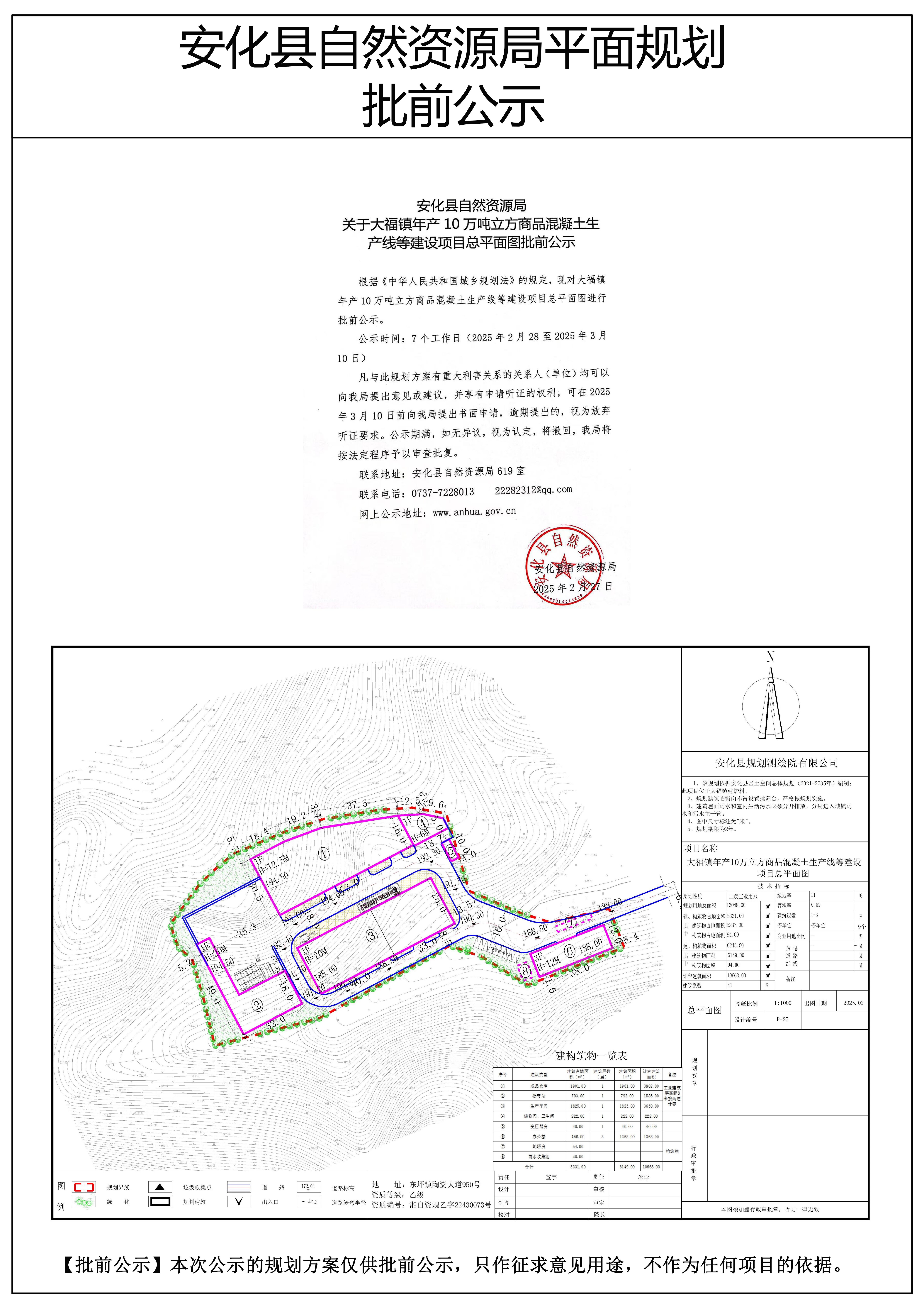 大福镇年产10万吨立方商品混凝土生产线等建设项目总平面图批前公示