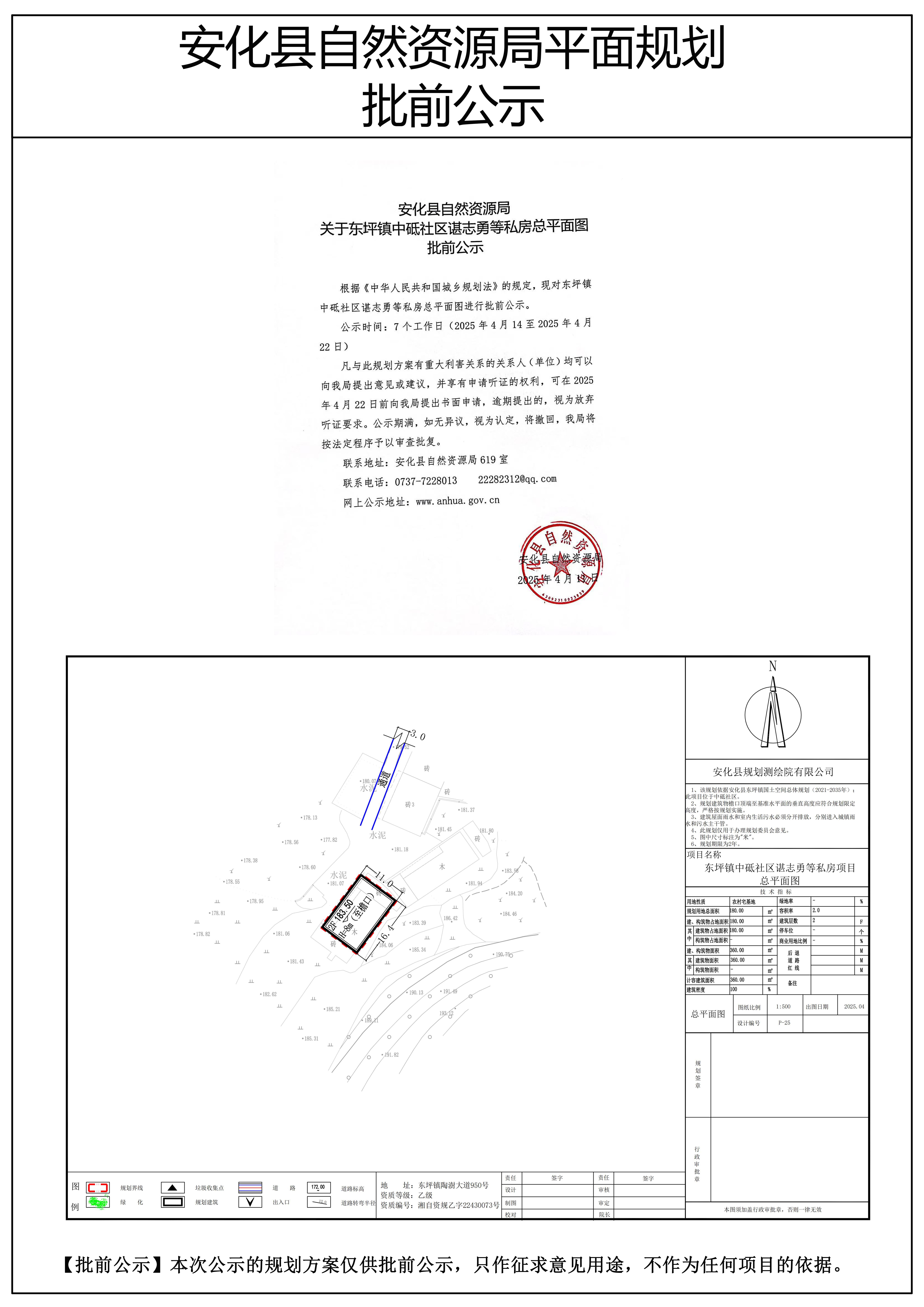 东坪镇中砥社区谌志勇等私房总平面图批前公示