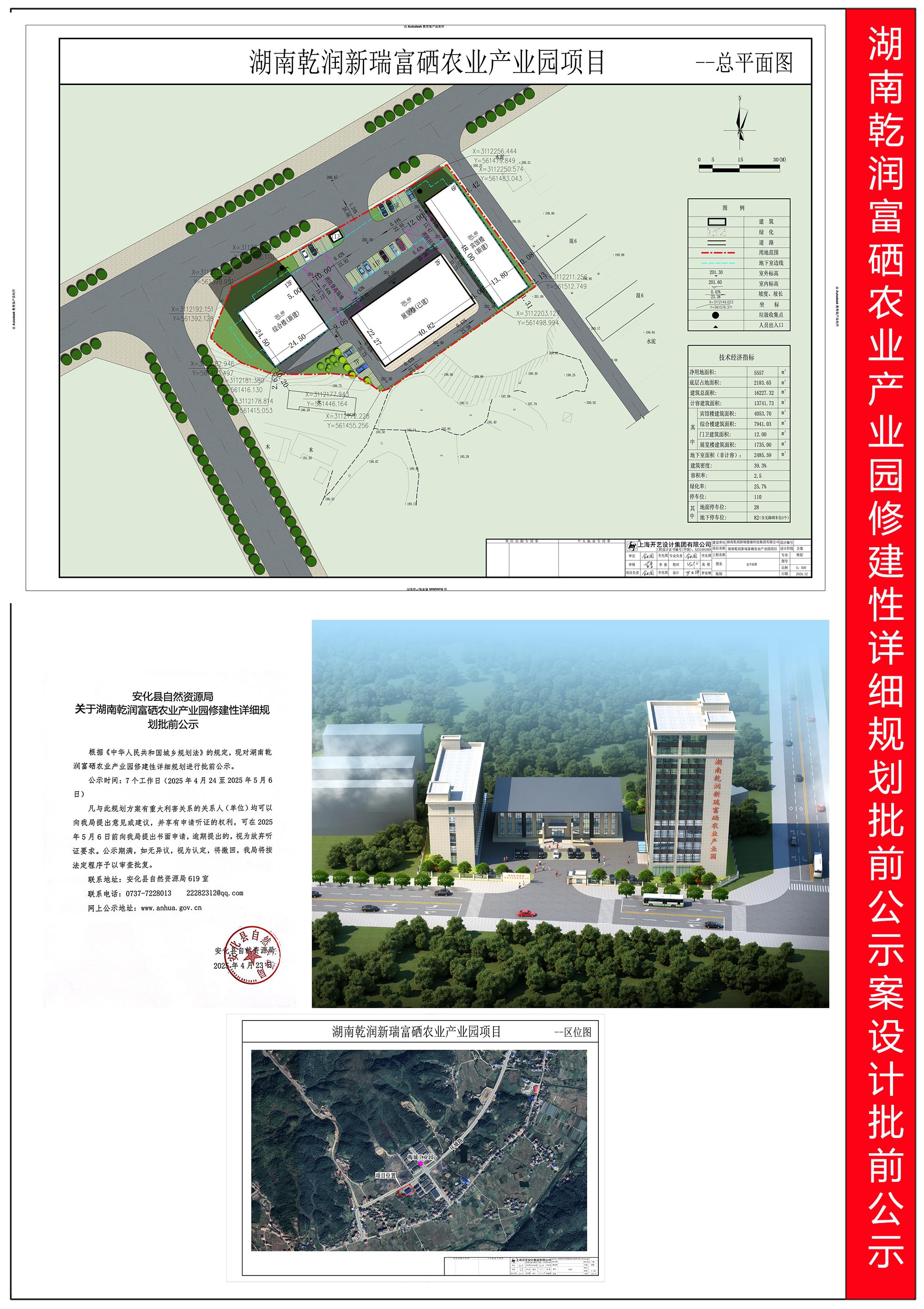 关于湖南乾润富硒农业产业园修建性详细规划批前公示