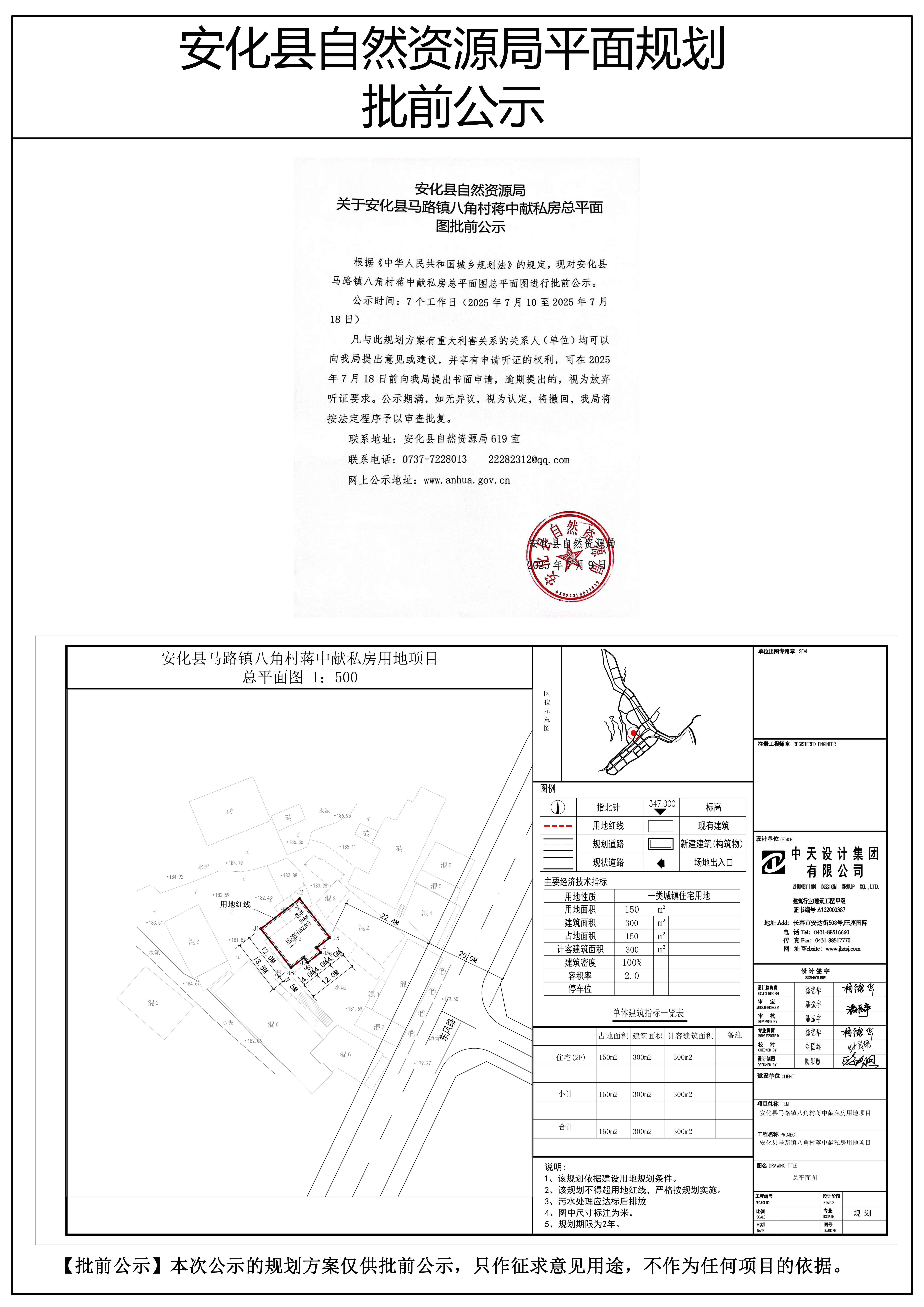 安化县马路镇八角村蒋中献私房总平面图批前公示