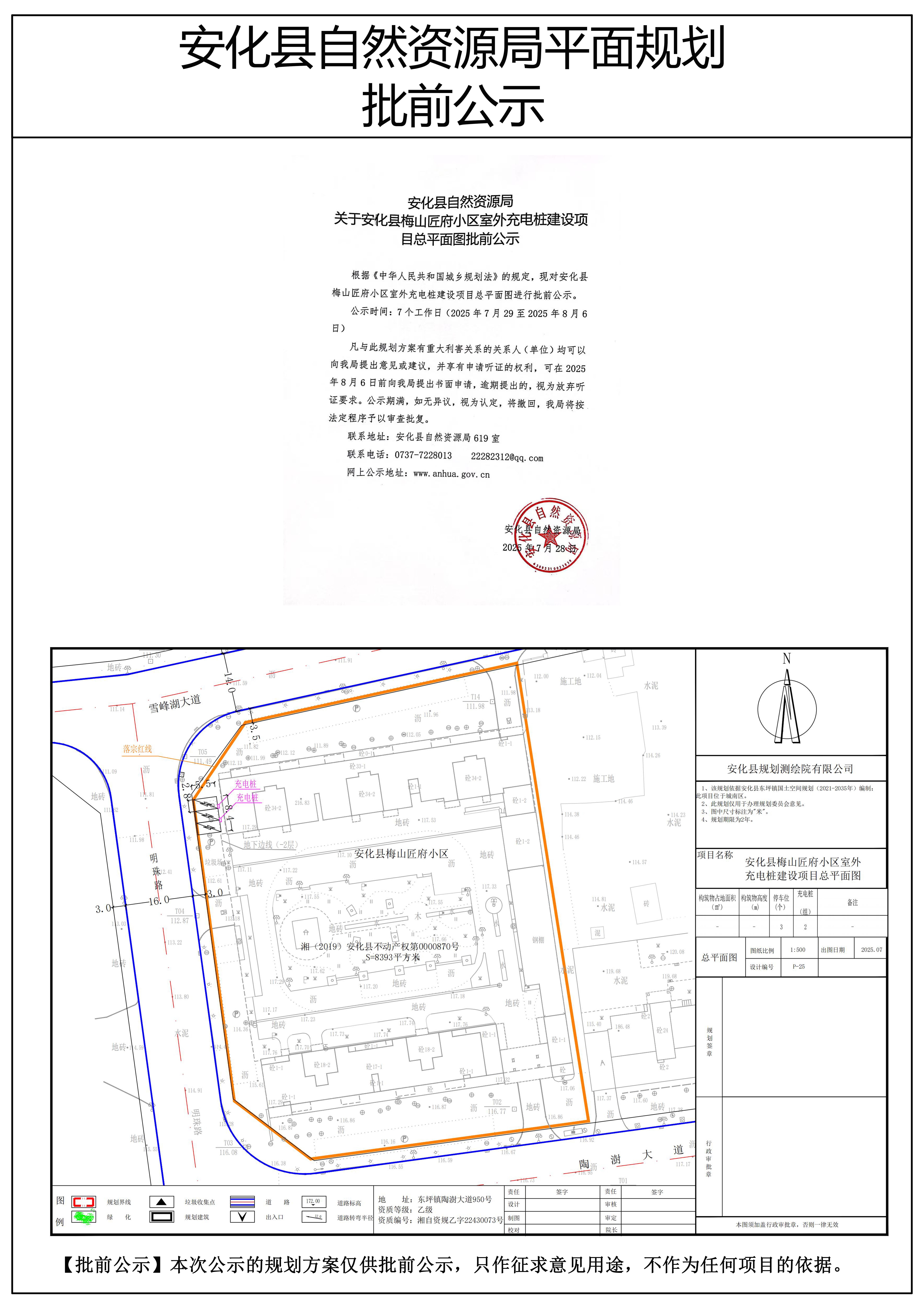 安化县梅山匠府小区室外充电桩建设项目总平面图批前公示