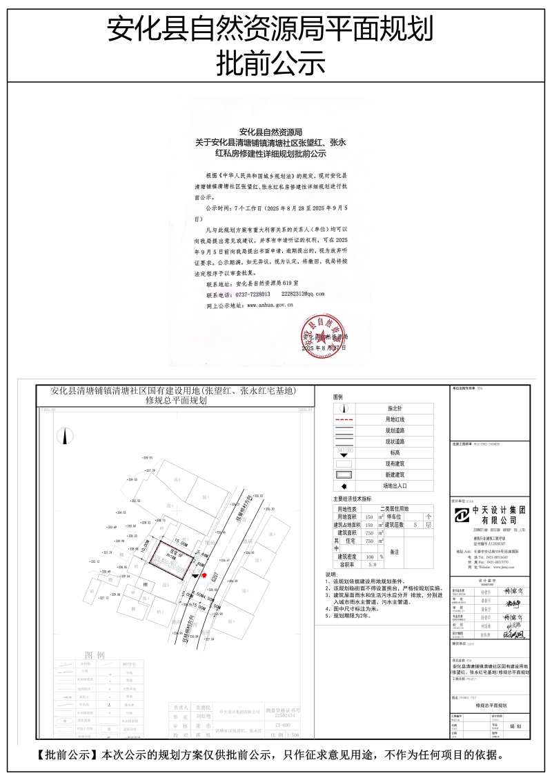 安化县清塘铺镇清塘社区张望红、张永红私房修建性详细规划批前公示