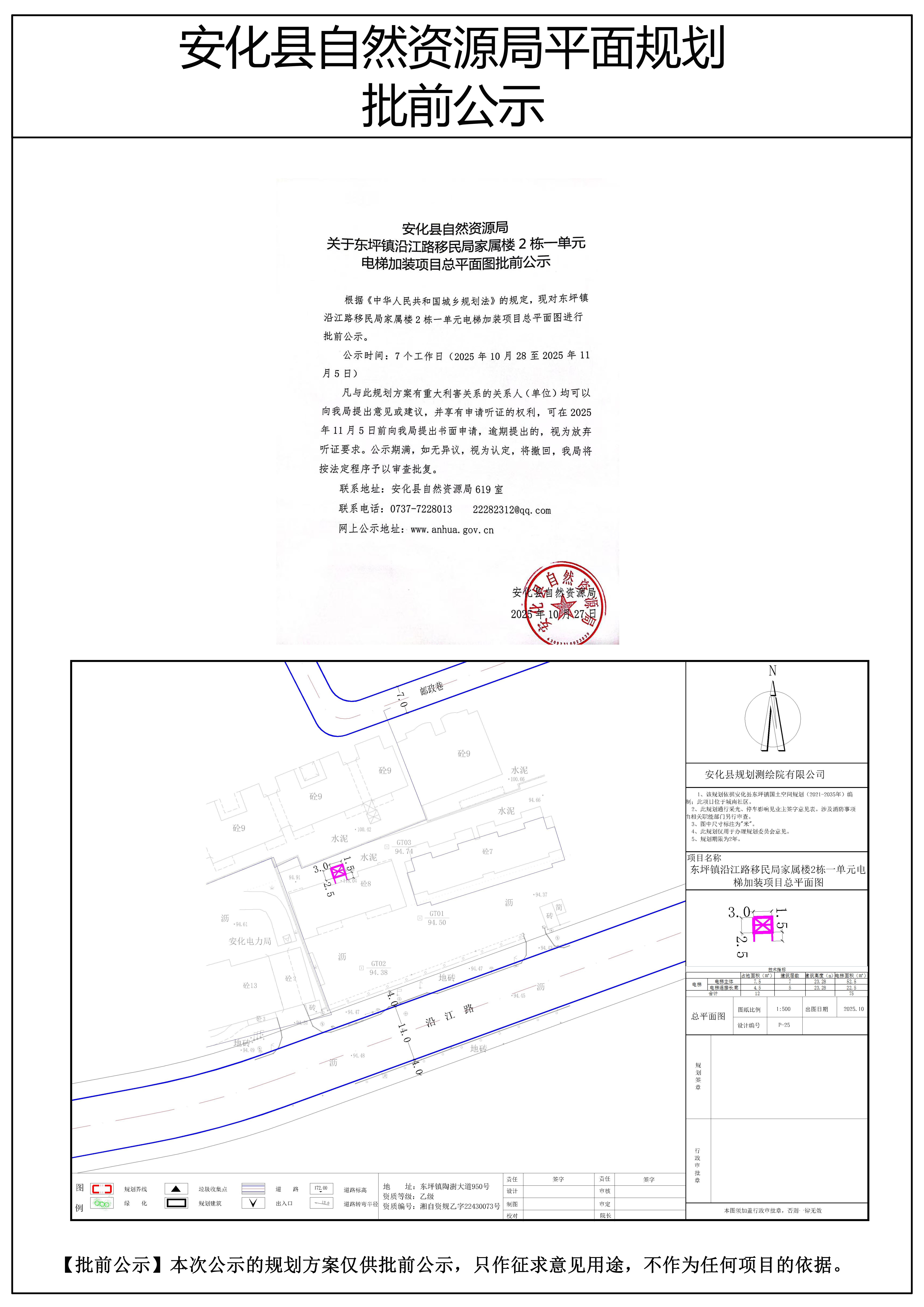 东坪镇沿江路移民局家属楼2栋一单元电梯加装项目总平面图批前公示