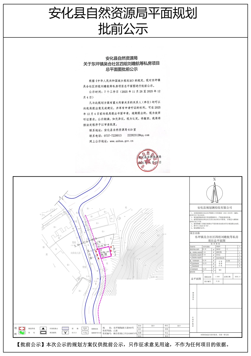 东坪镇吴合社区四组刘瞻航等私房项目总平面图批前公示
