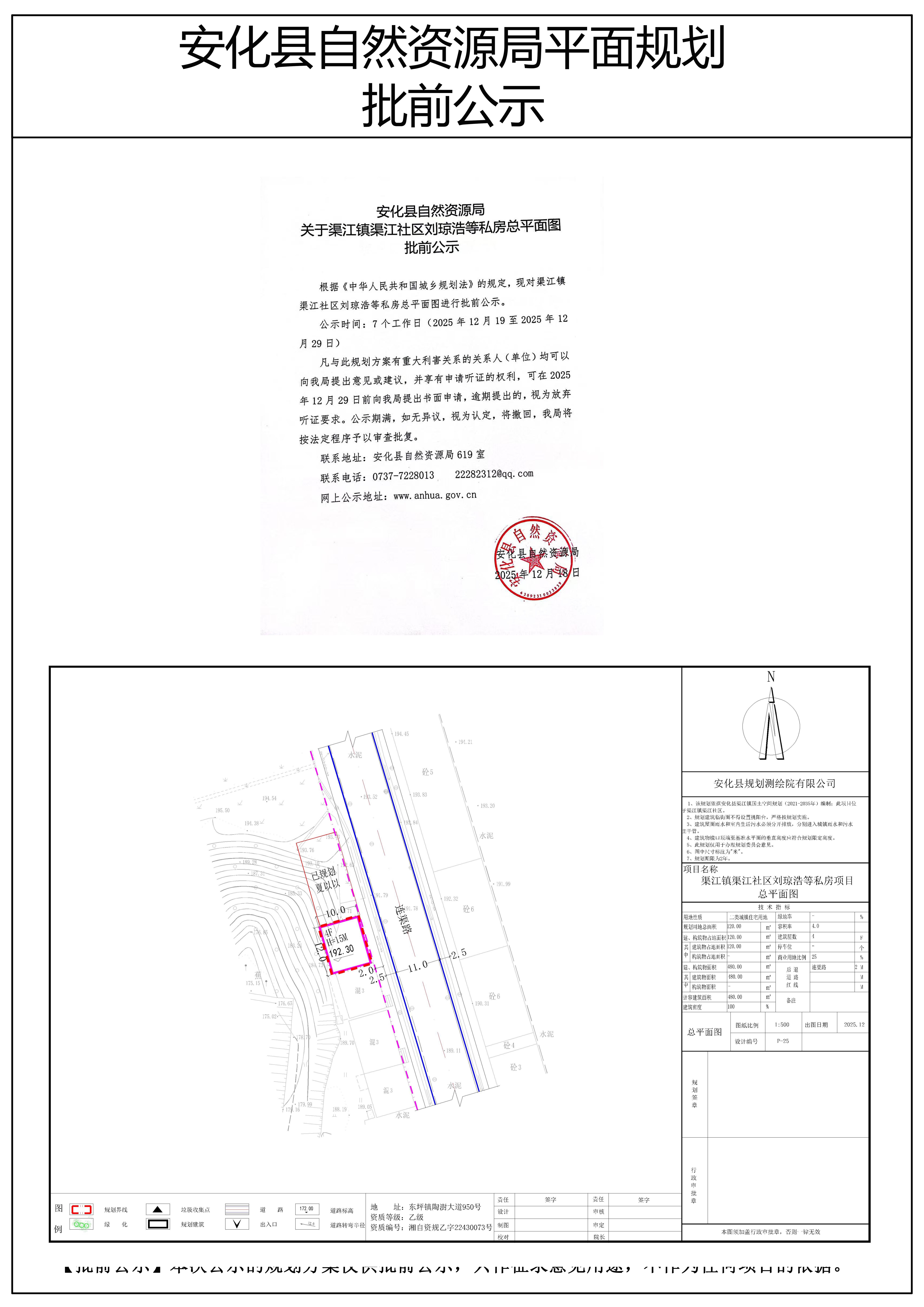 渠江镇渠江社区刘琼浩等私房总平面图 批前公示