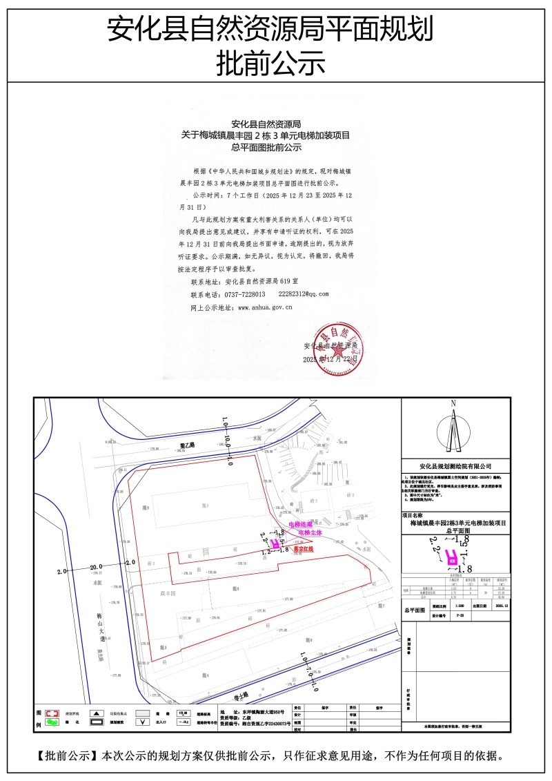 梅城镇晨丰园2栋3单元电梯加装项目总平面图批前公示