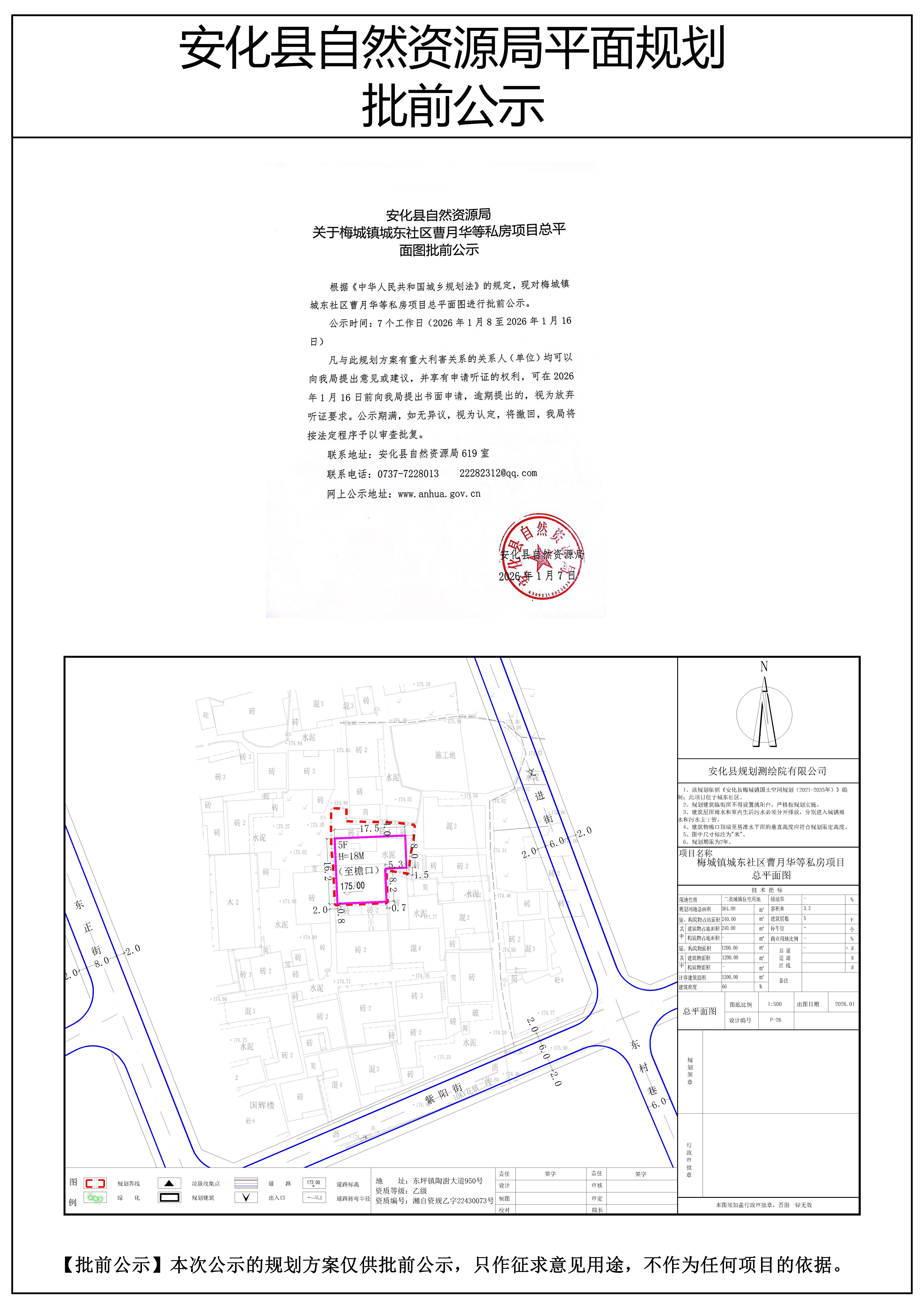梅城镇城东社区曹月华等私房项目总平面图批前公示