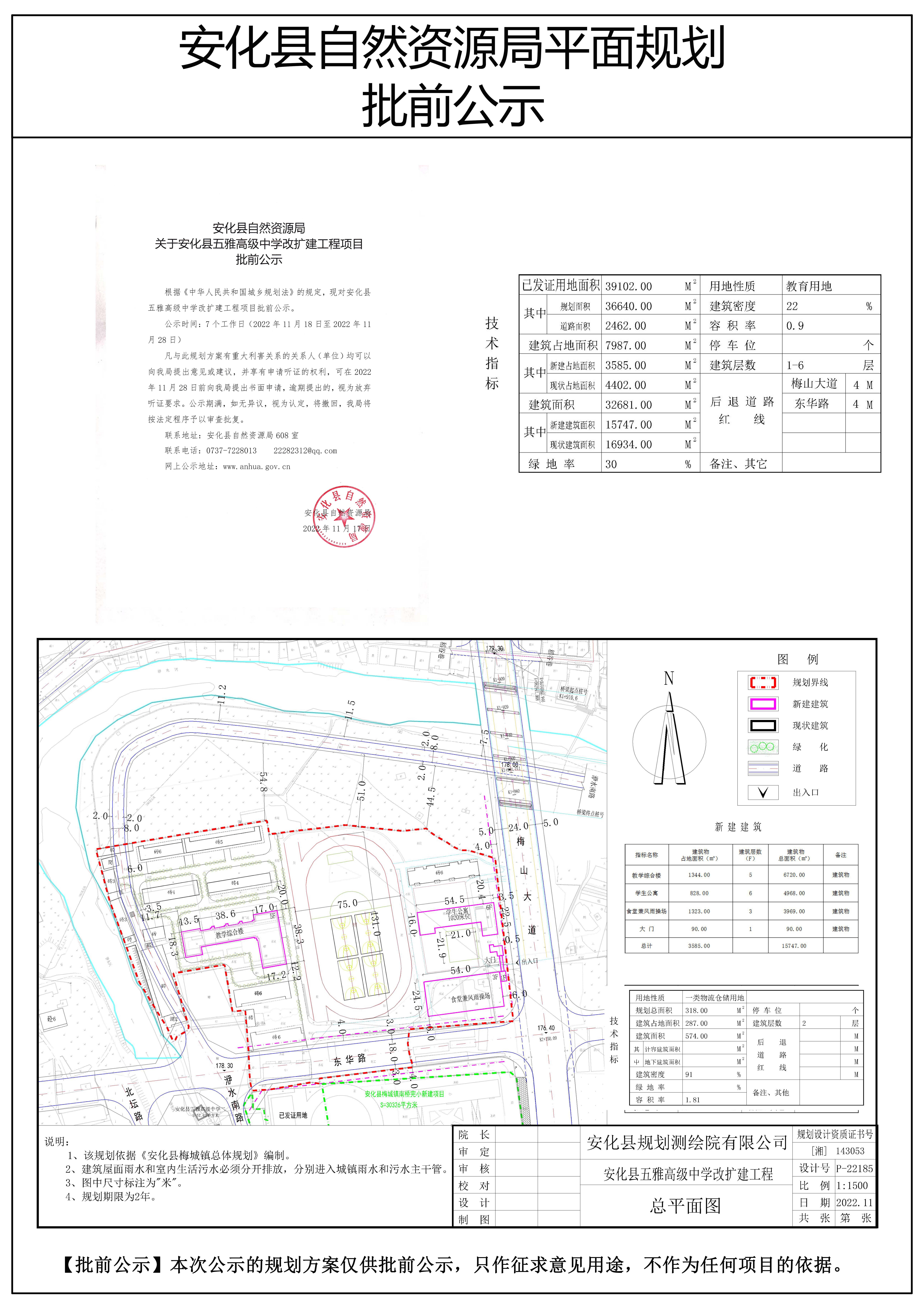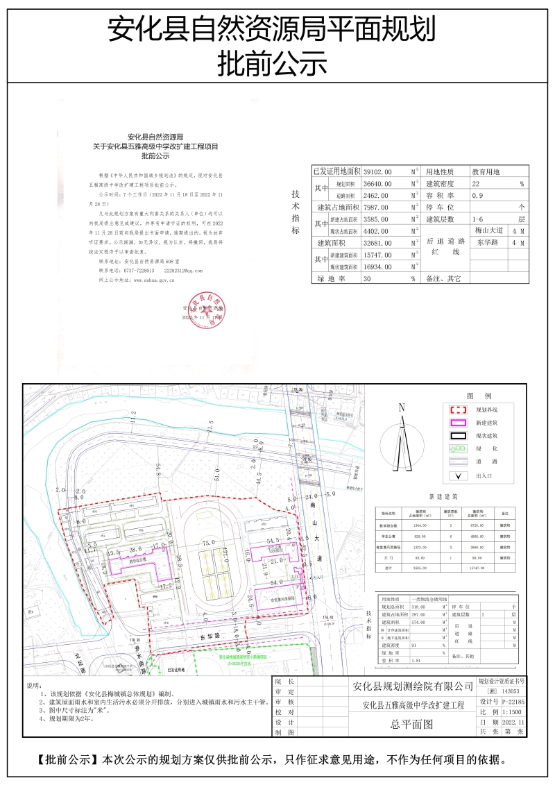 关于安化县五雅高级中学改扩建工程项目批前公示