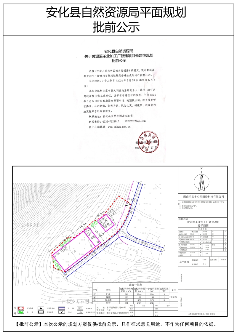 黄泥溪茶业加工厂新建项目修建性规划批前公示