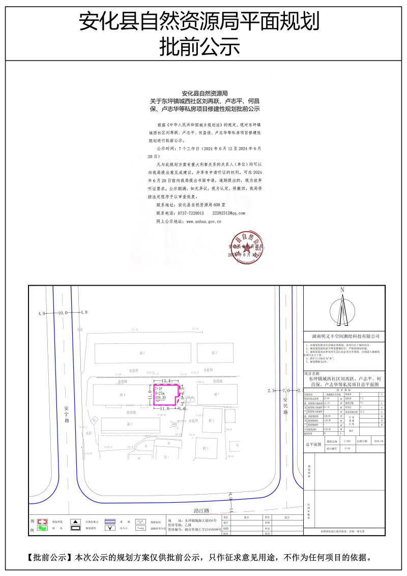 东坪镇城西社区刘再跃、卢志平、何昌保、卢志华等私房项目修建性详细规划批前公示