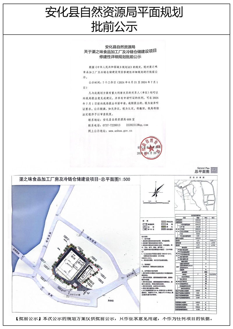 渠之味食品加工厂及冷链仓储建设项目修建性详细规划批前公示