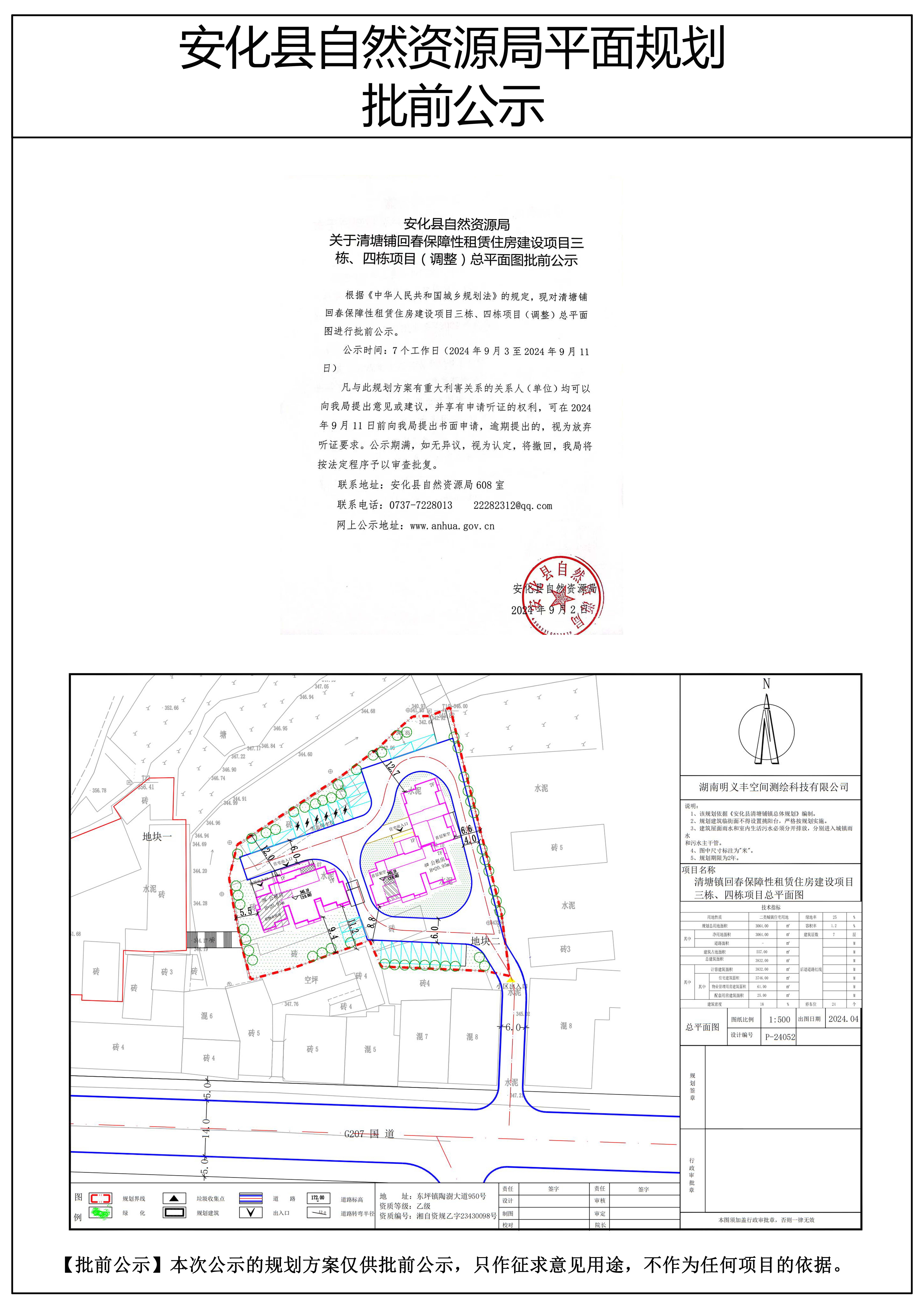 清塘铺回春保障性租赁住房建设项目三栋、四栋项目(调整)总平面图批前公示