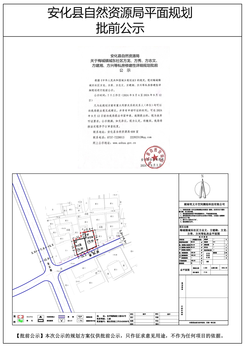 梅城镇城东社区方龙、方秀、方志文、方建湘、方兴等私房修建性详细规划批前公示