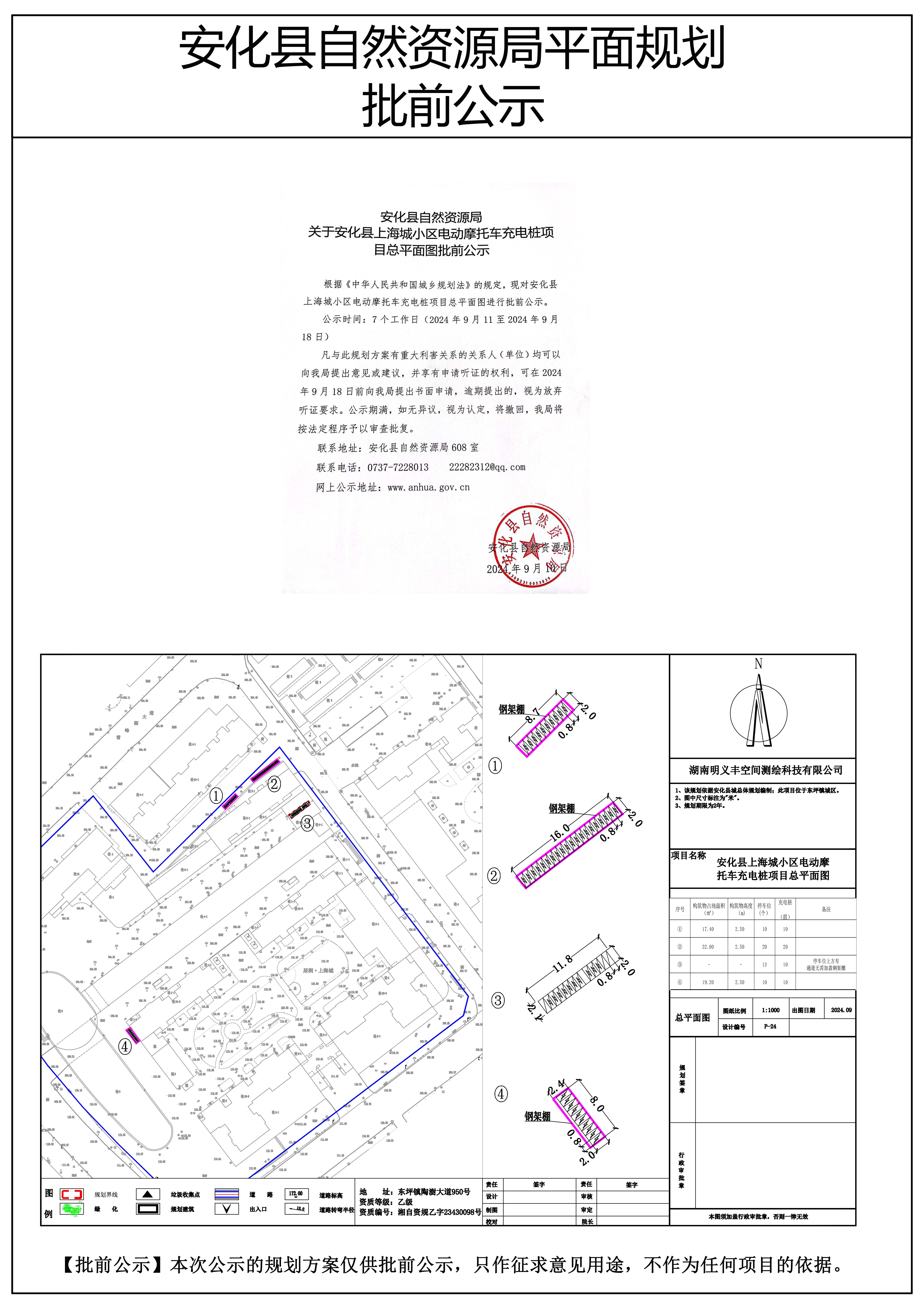 安化县上海城小区电动摩托车充电桩项目总平面图批前公示