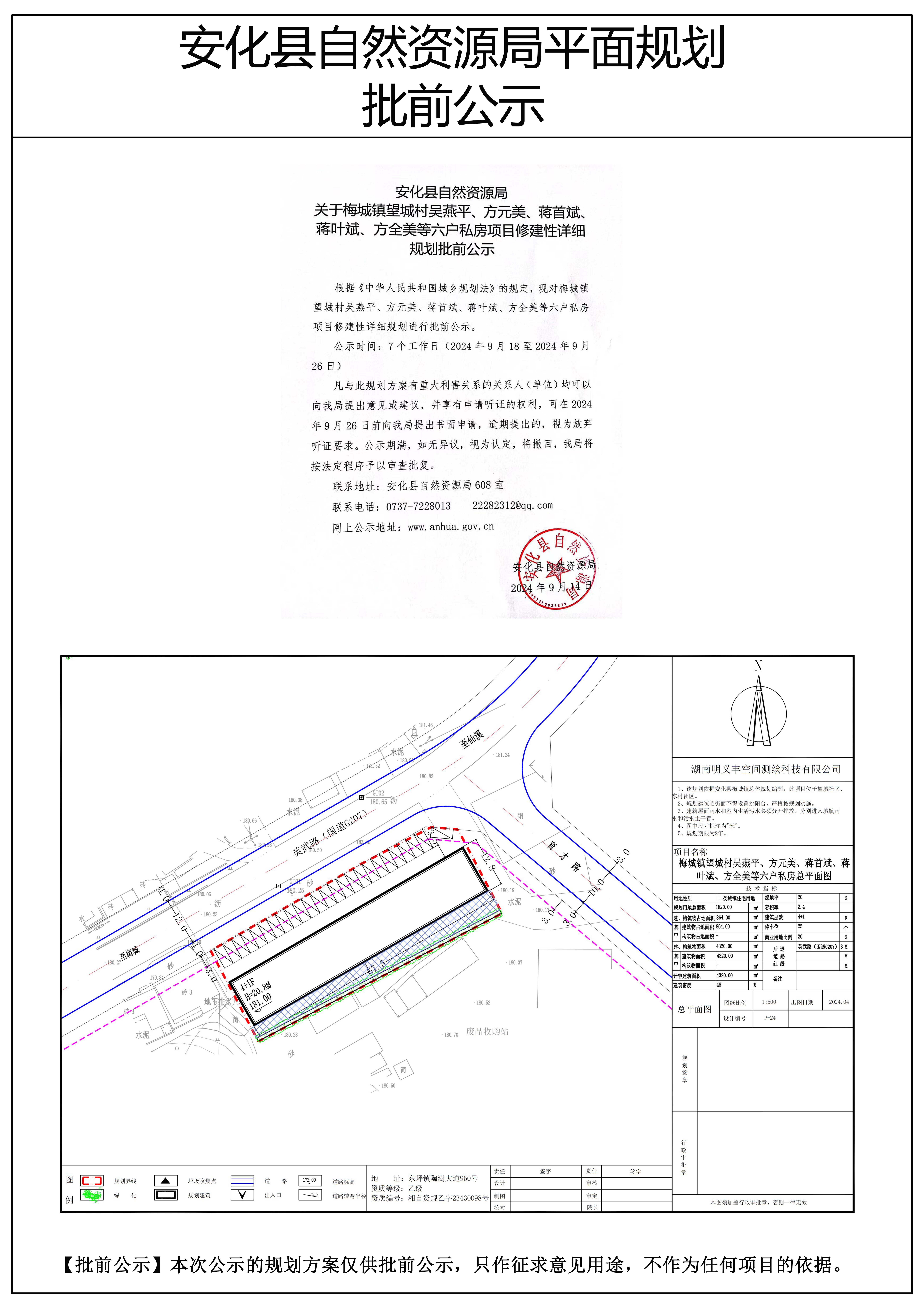 关于梅城镇望城村吴燕平、方元美、蒋首斌、蒋叶斌、方全美等六户私房项目修建性详细规划批前公示