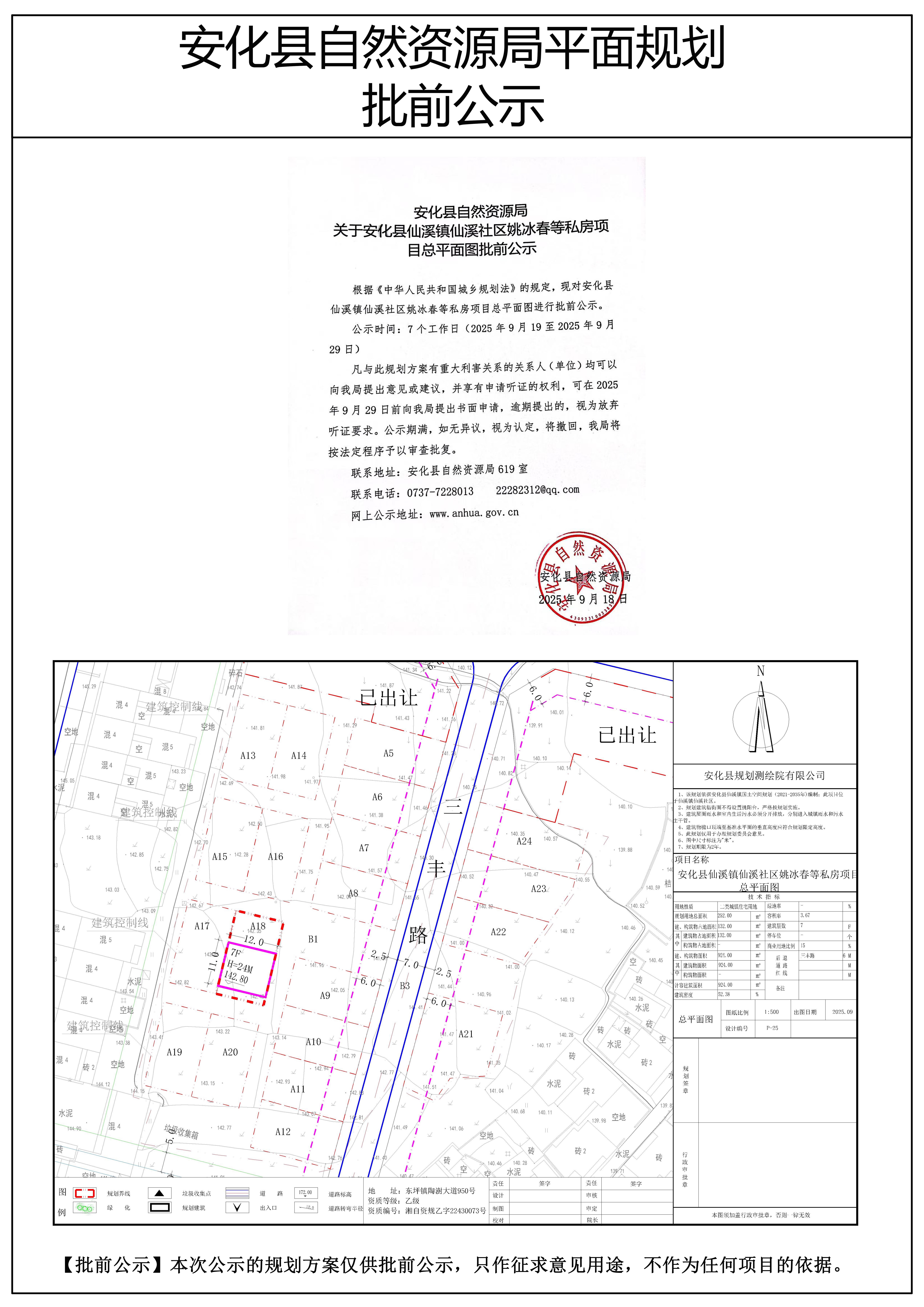 安化县仙溪镇仙溪社区姚冰春等私房项目总平面图批前公示