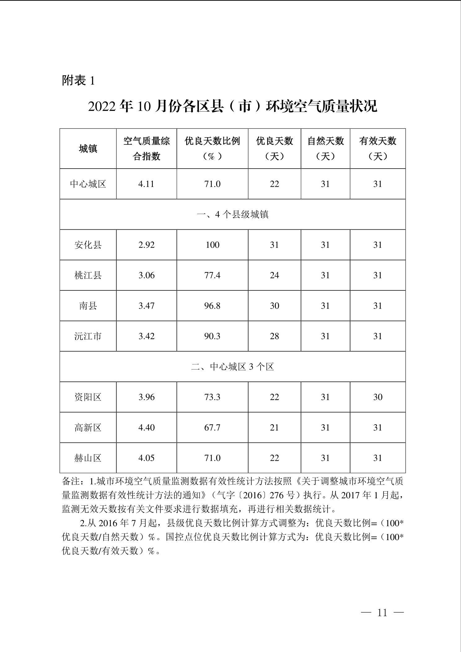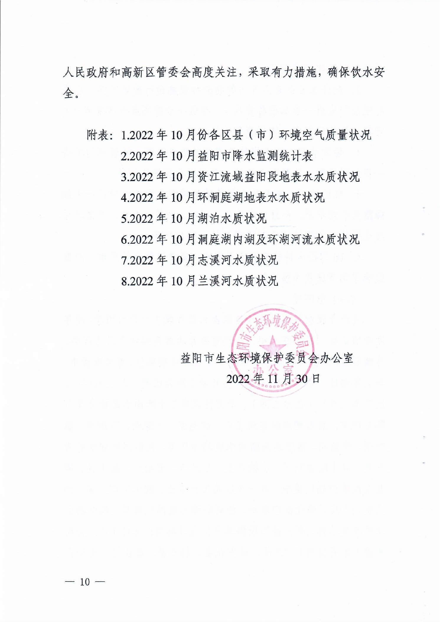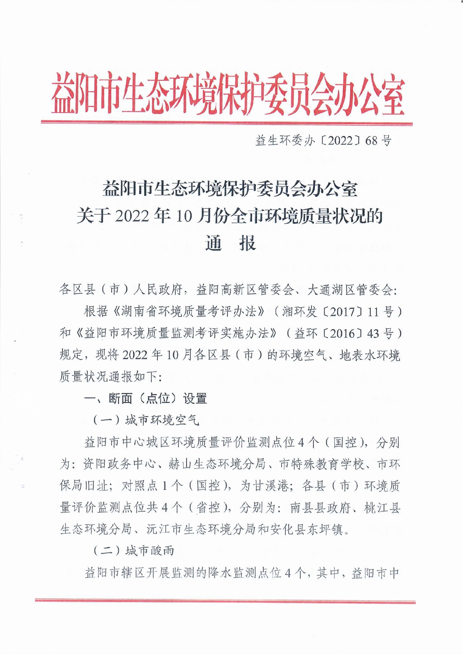 2022年10月环境质量通报