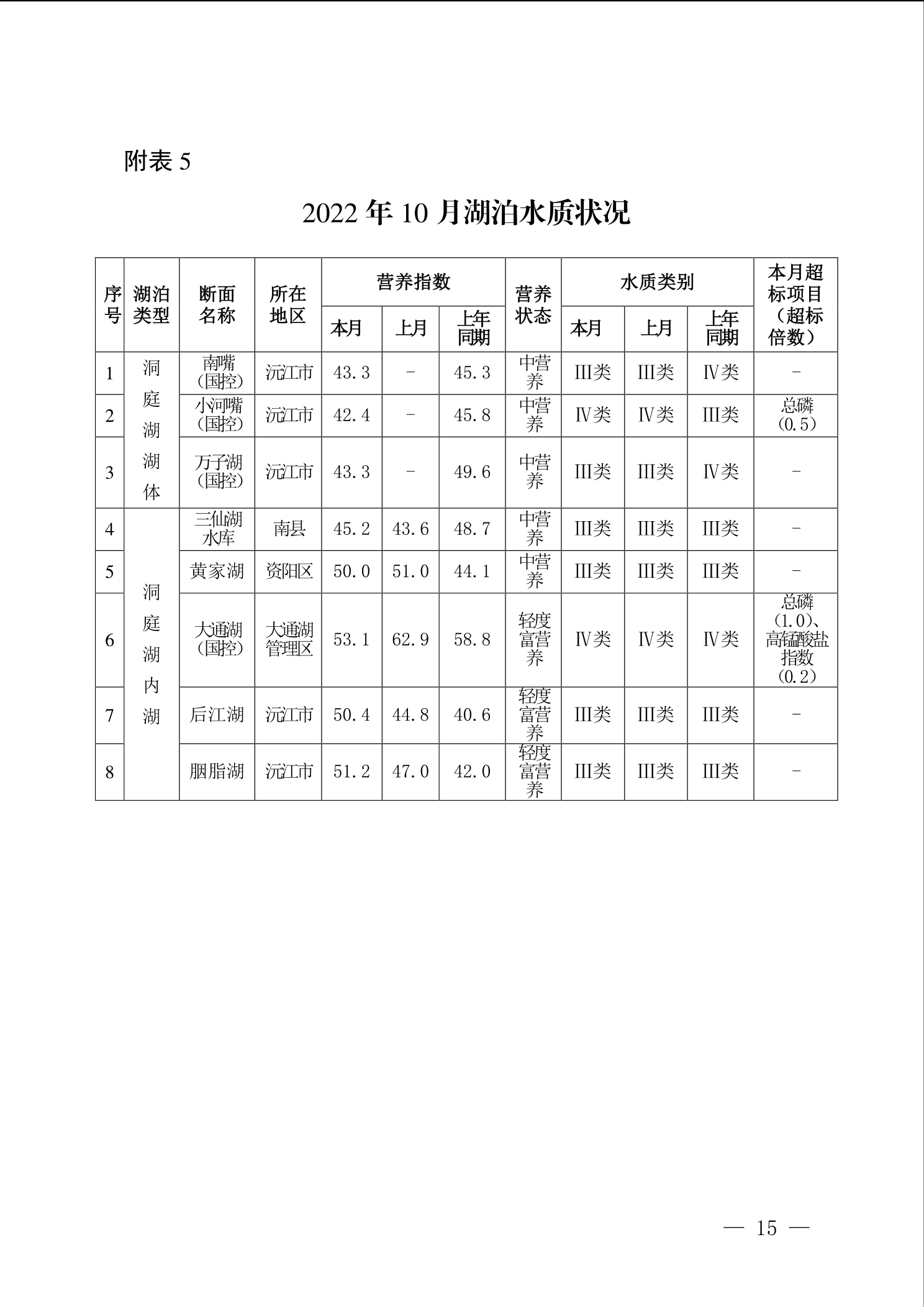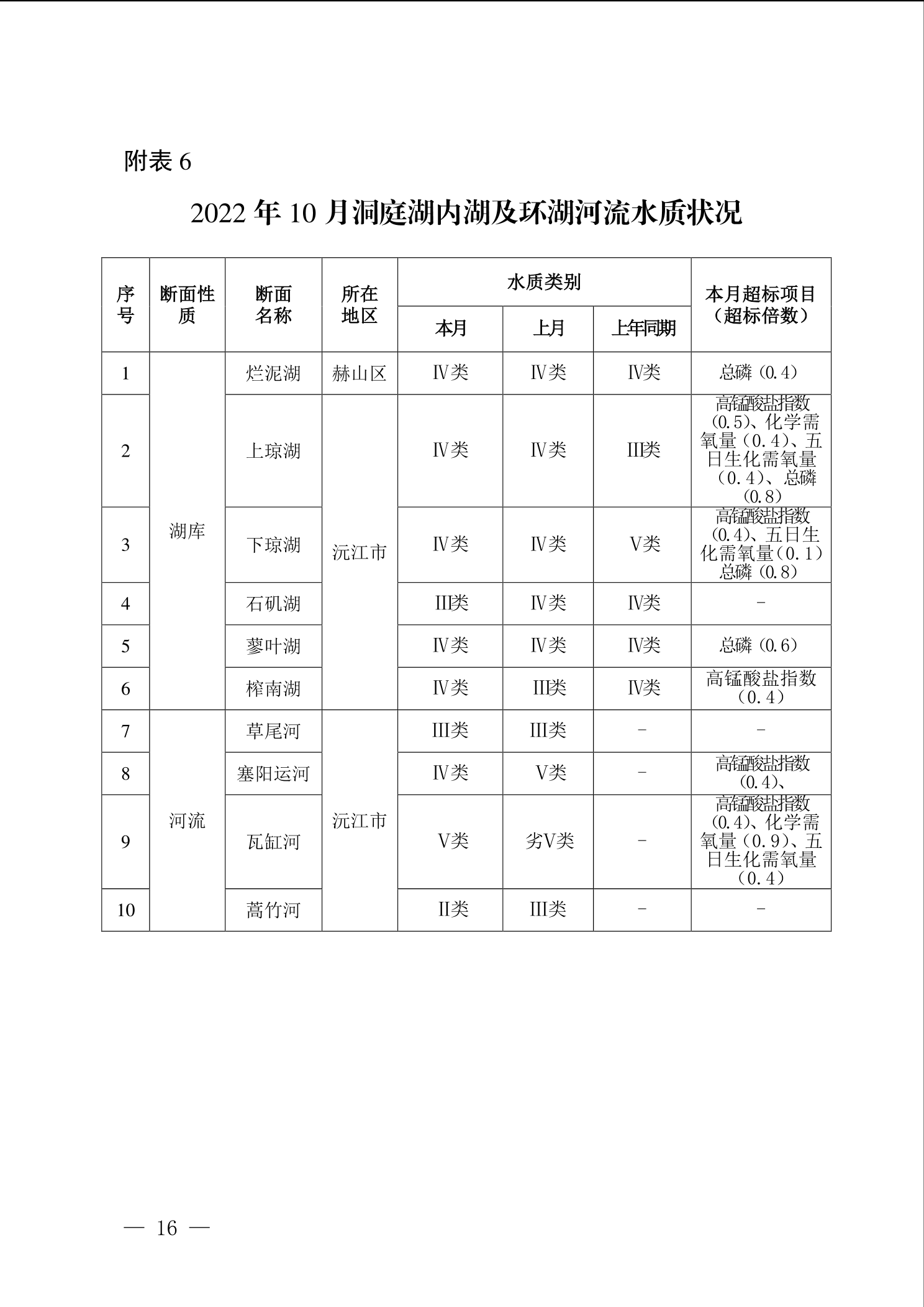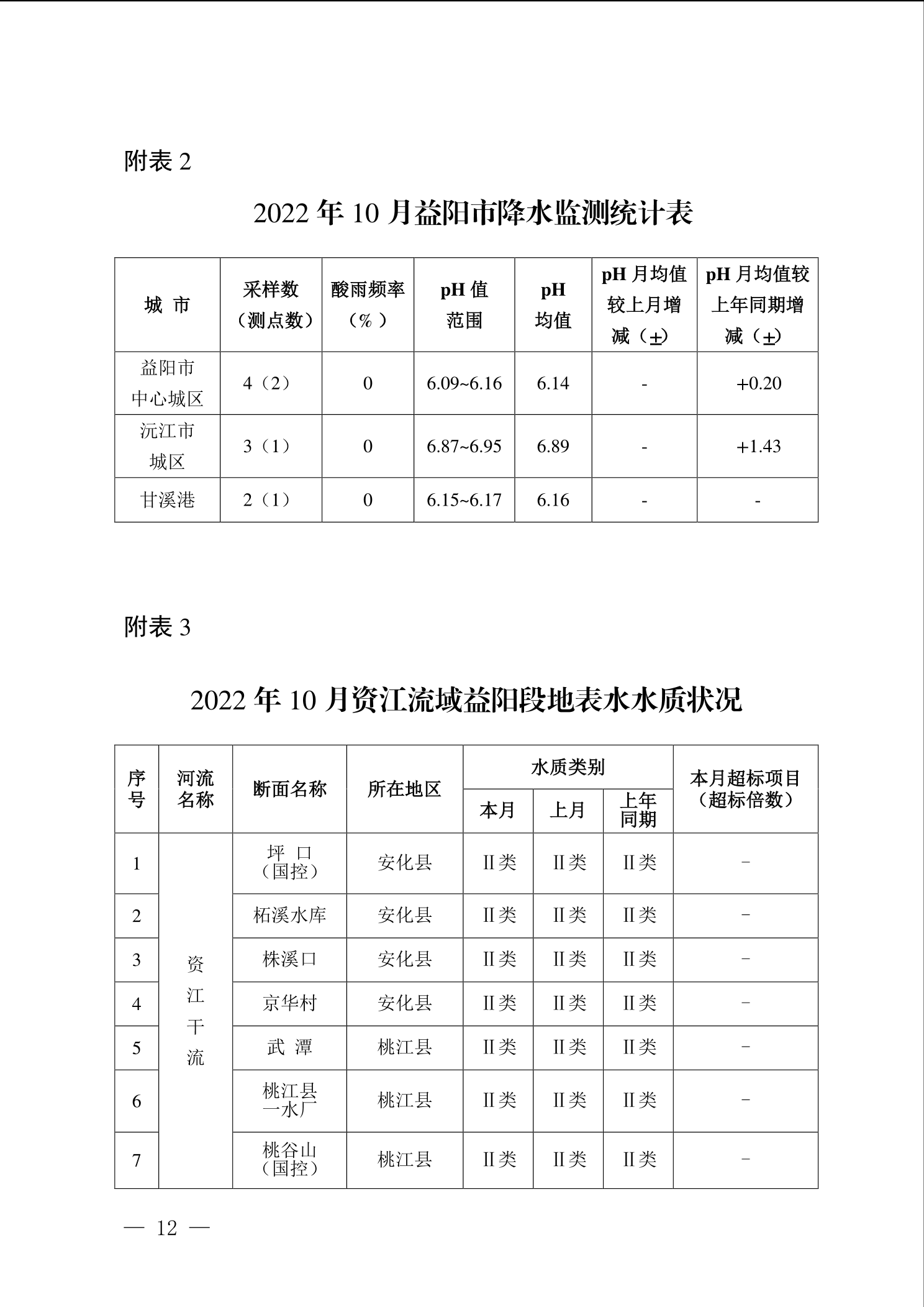 2022年10月环境质量通报