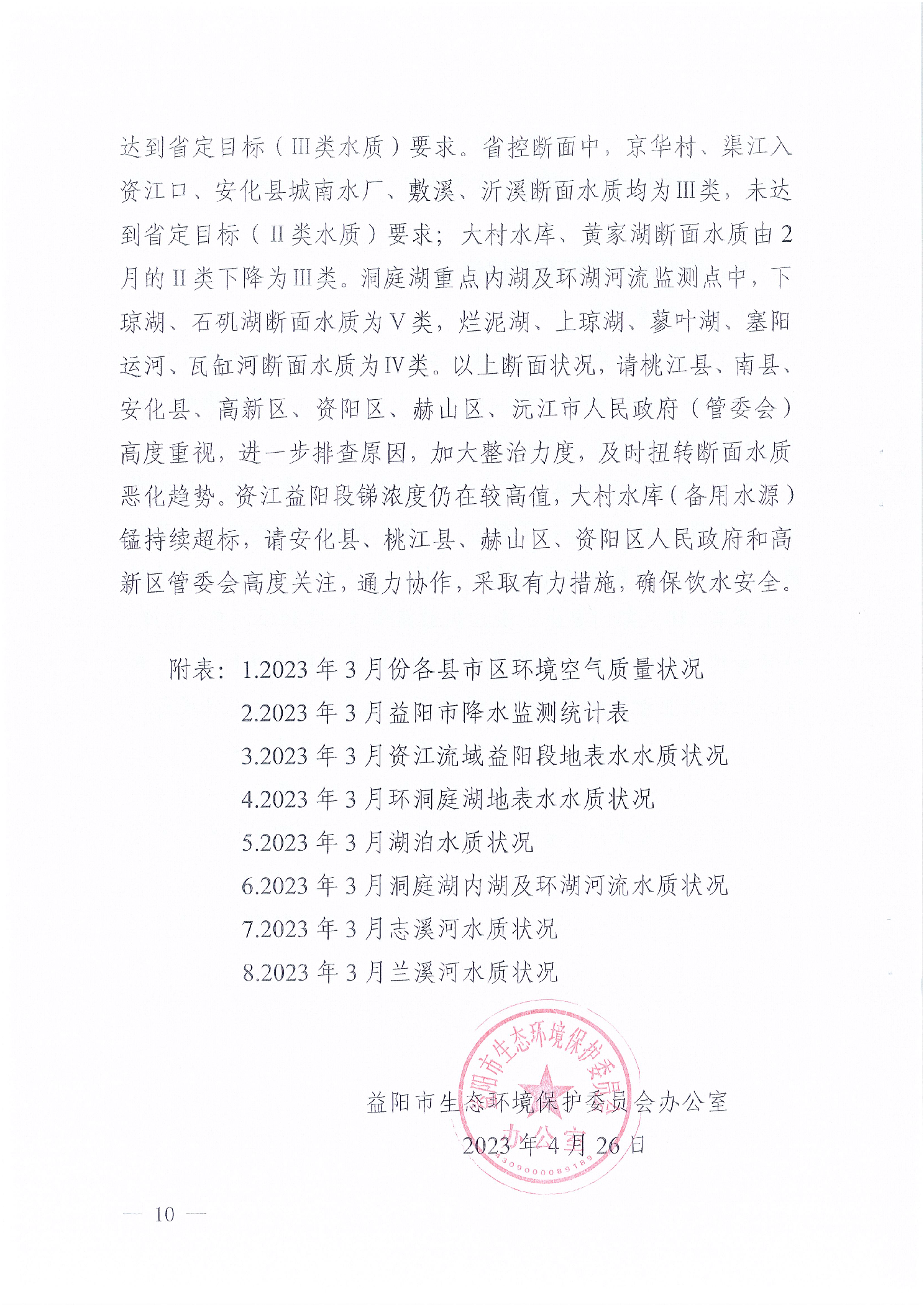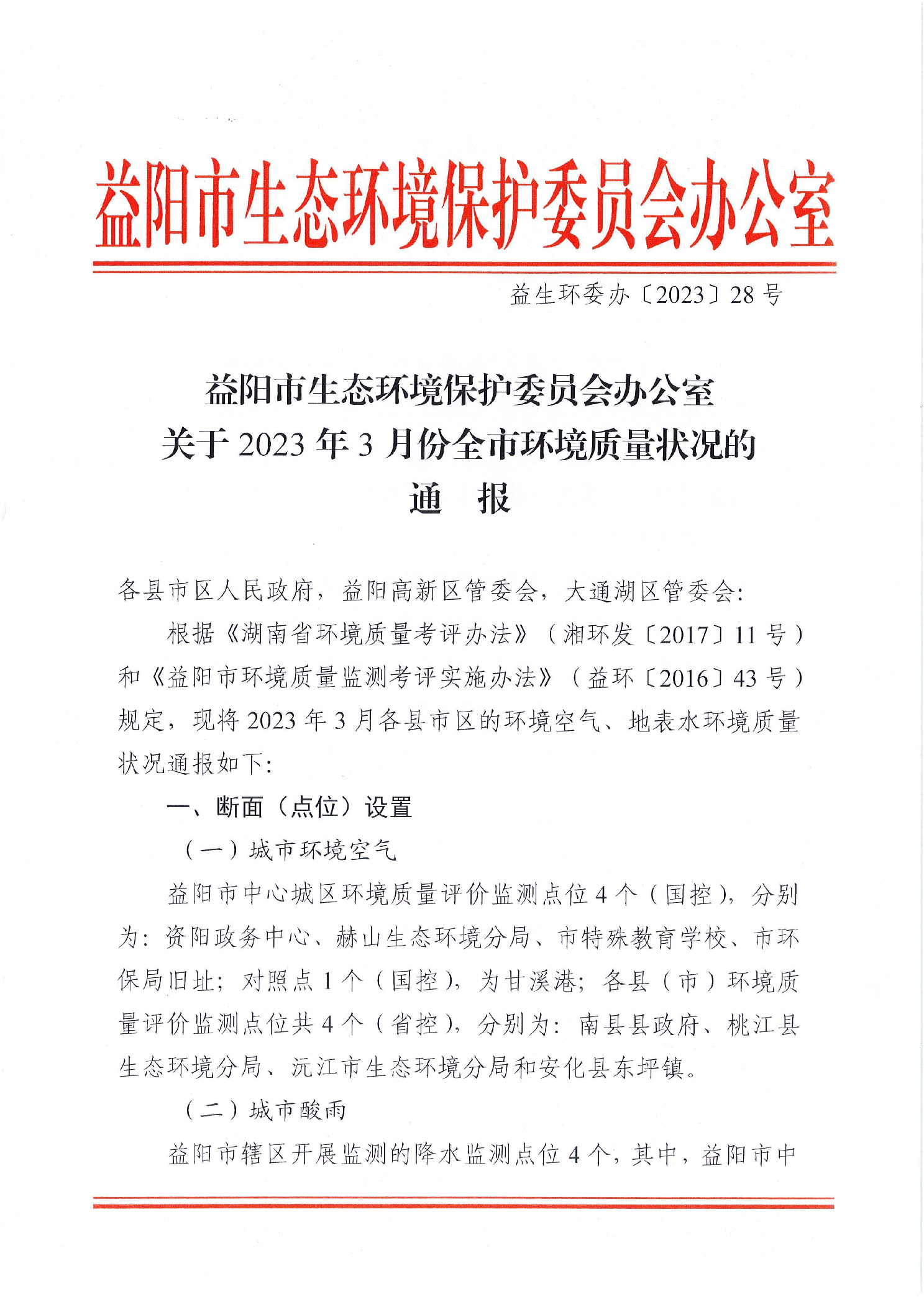2023年3月环境质量状况通报