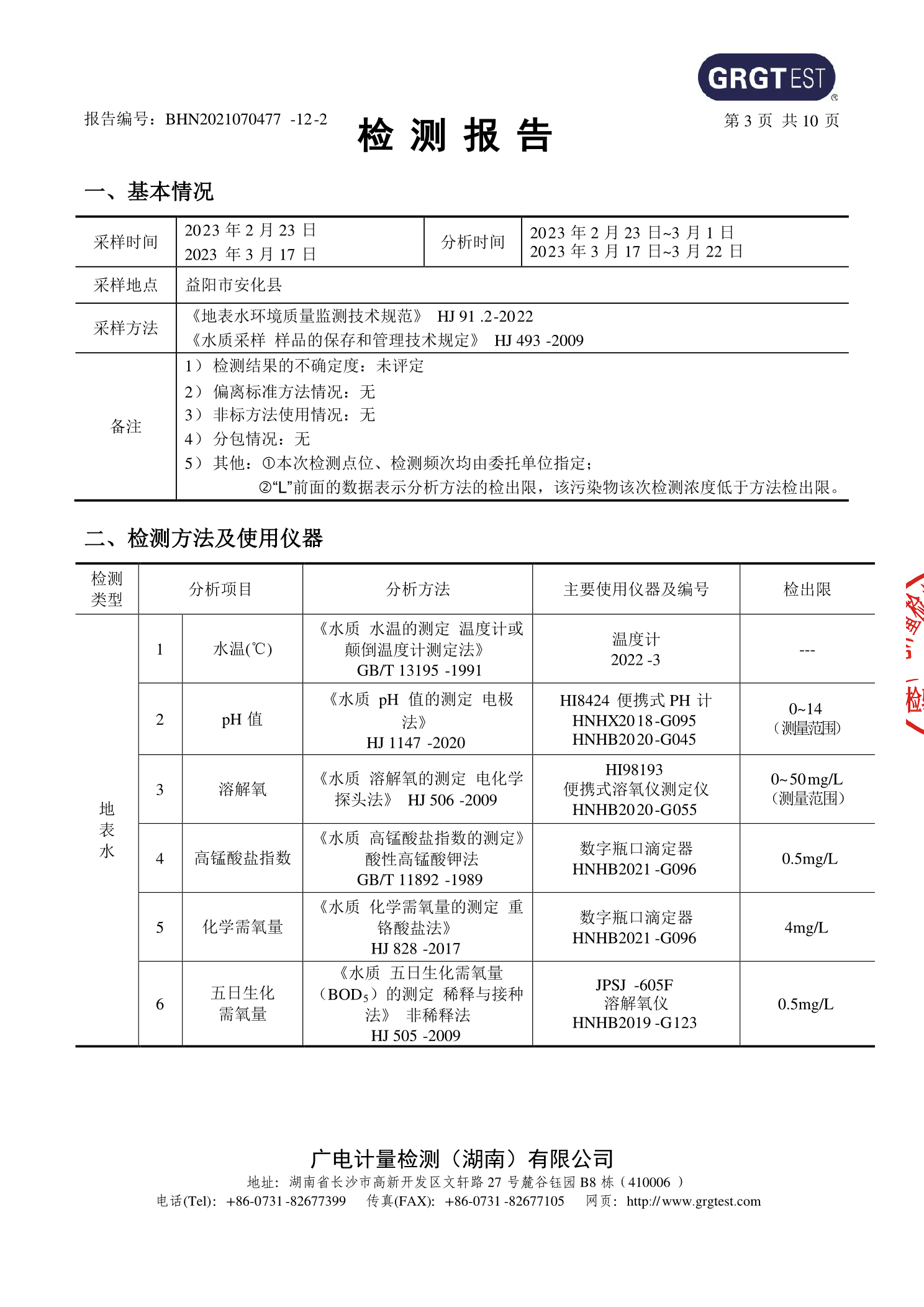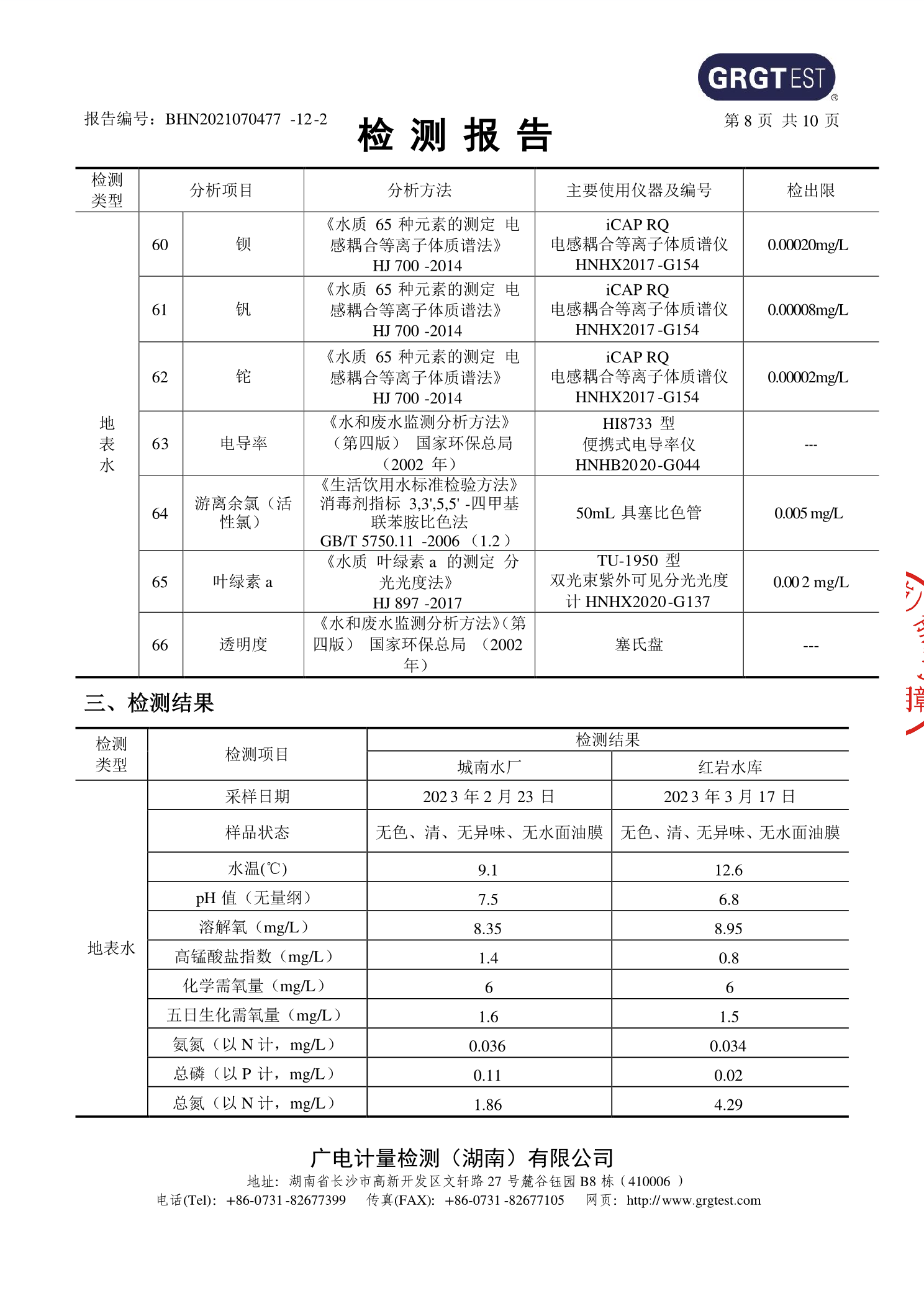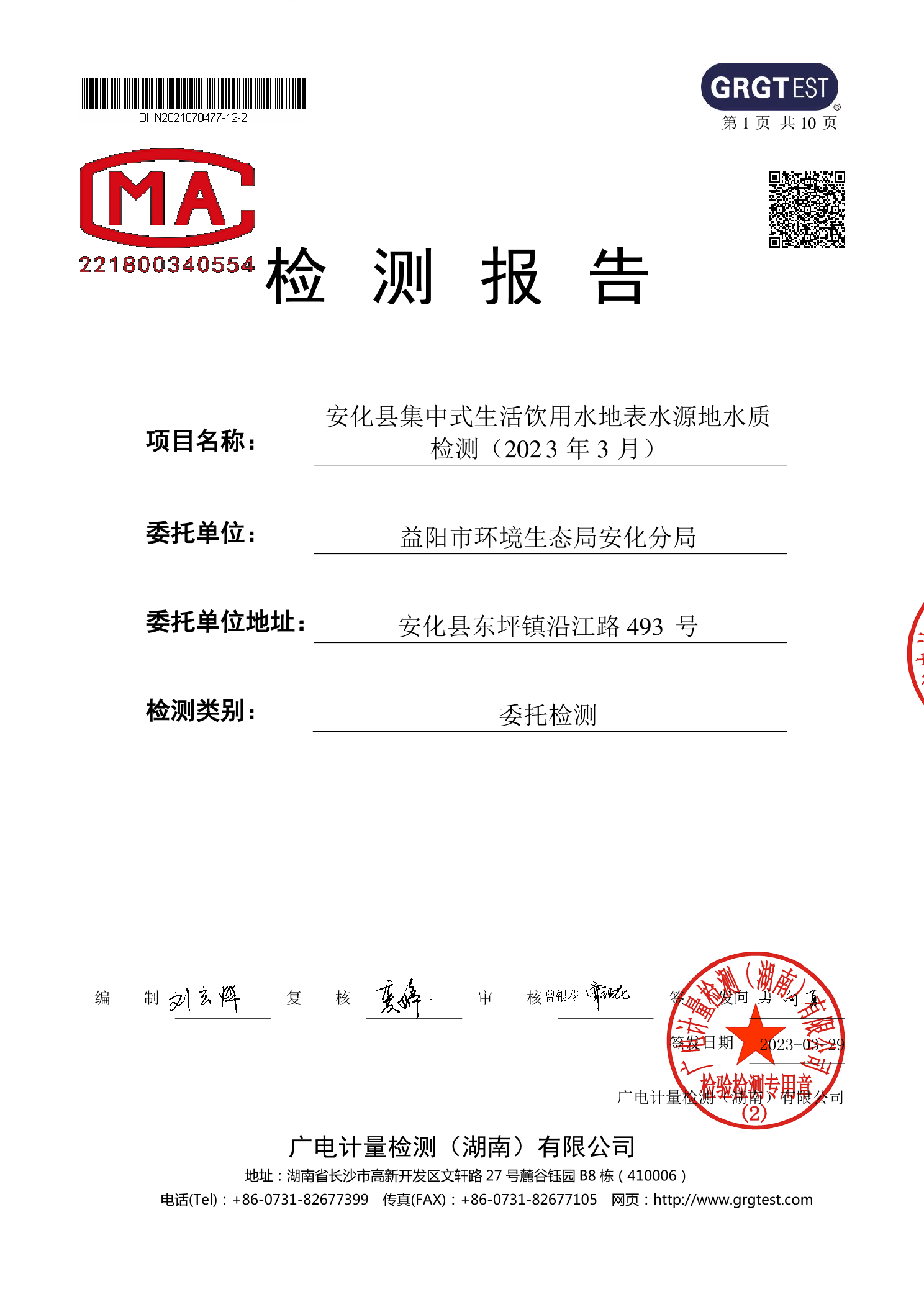 安化县2023年第一季度集中式生活饮用水水源地水质监测