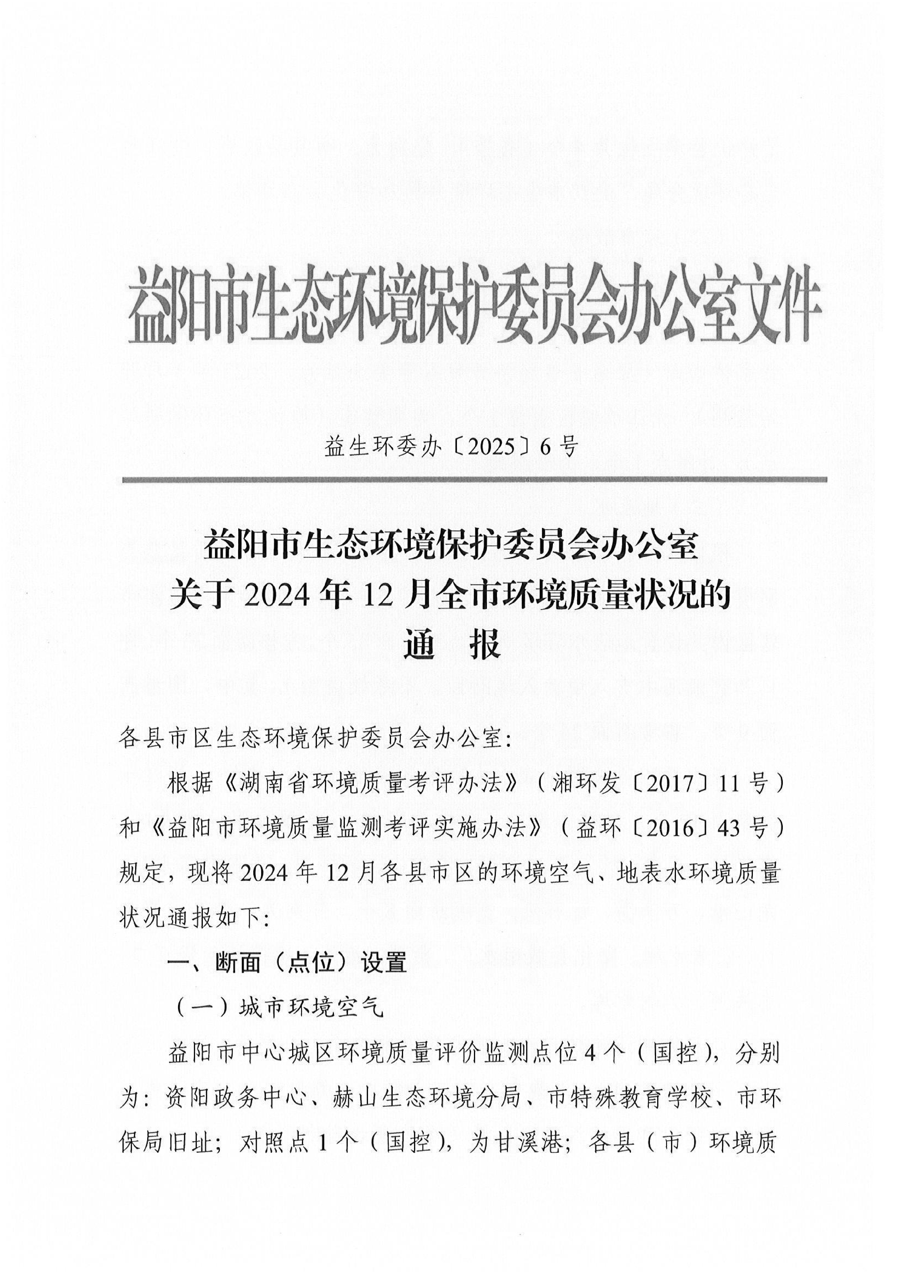 2024年12月全市环境质量状况的通报