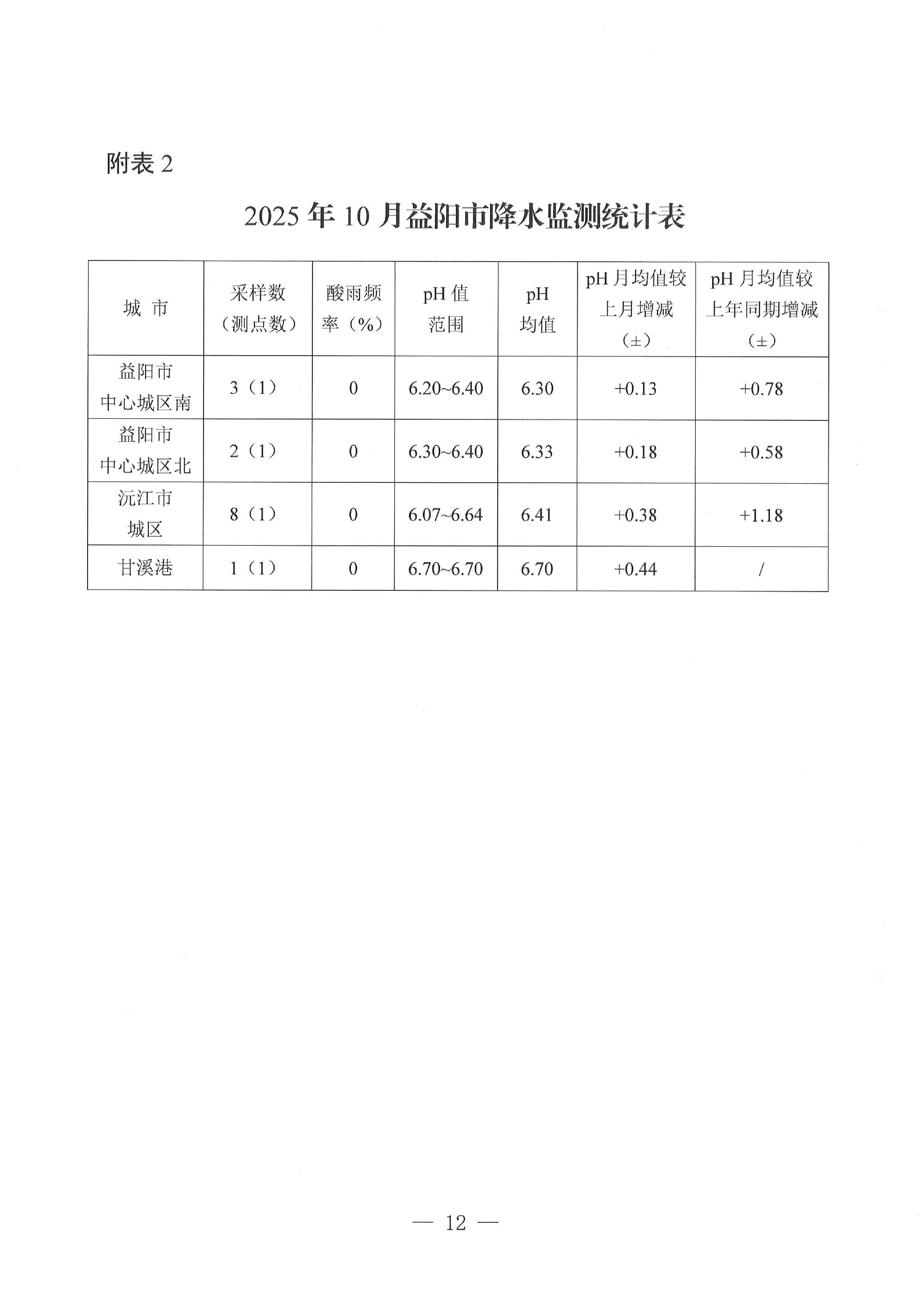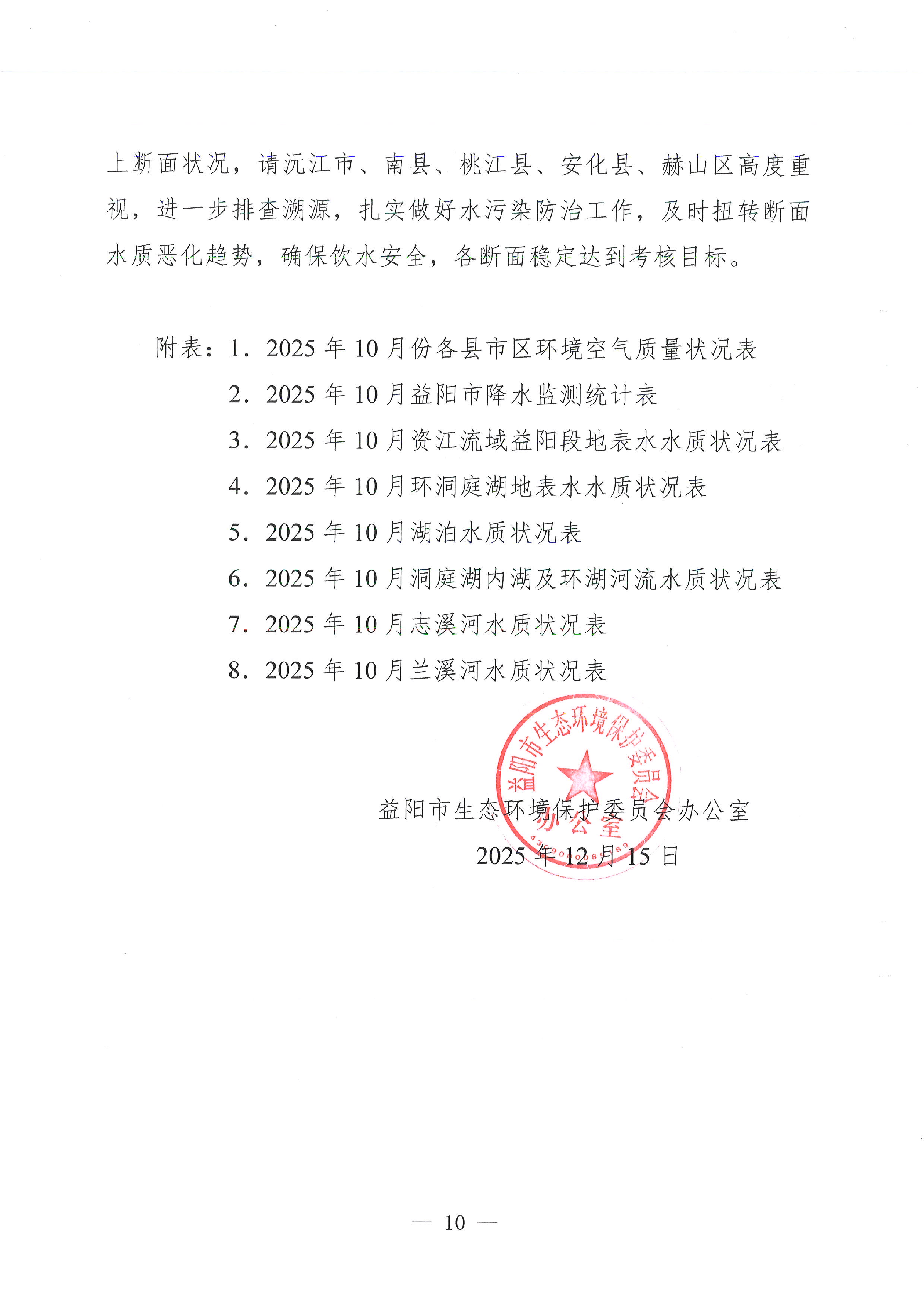2025年10月全市环境质量状况的通报