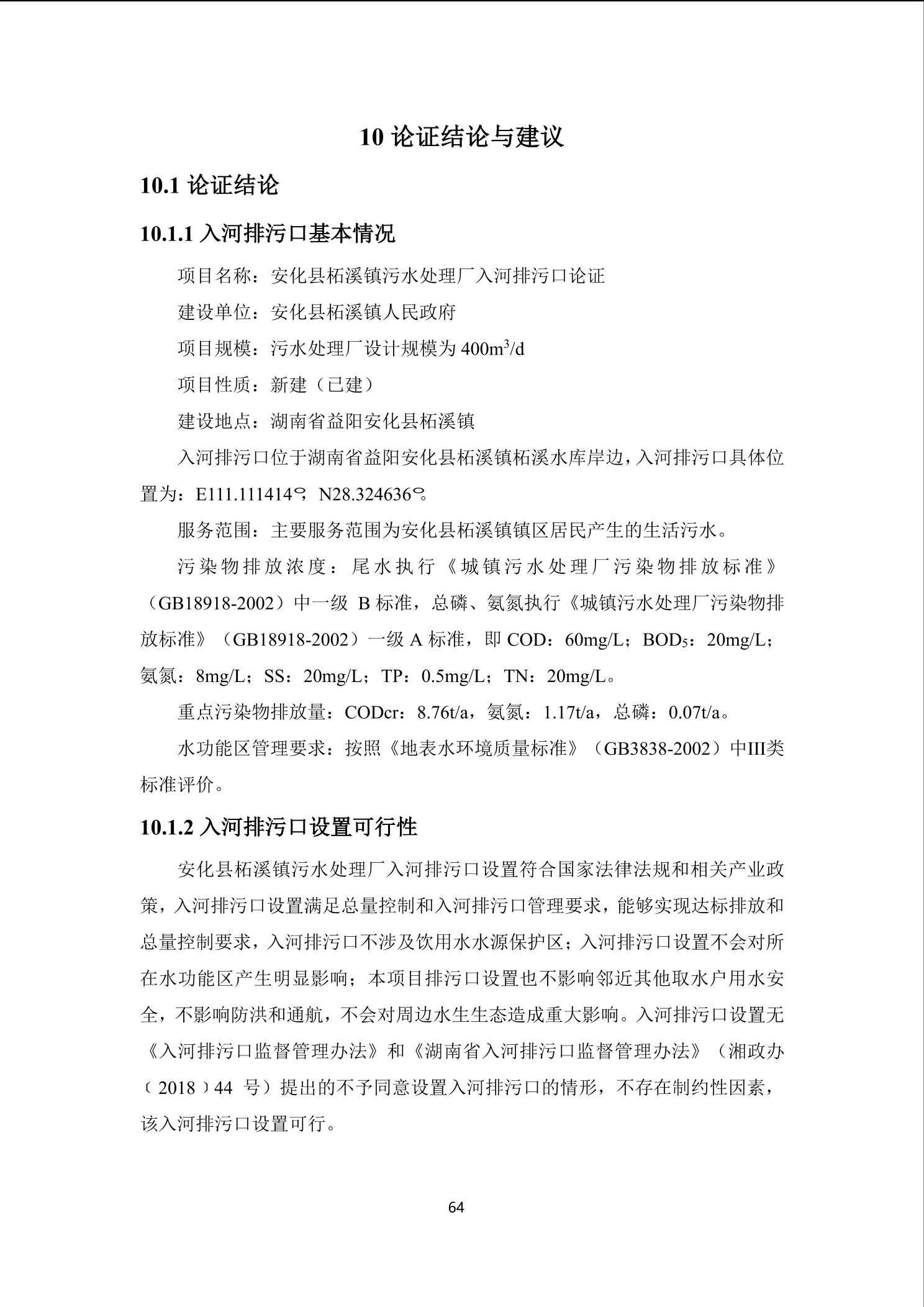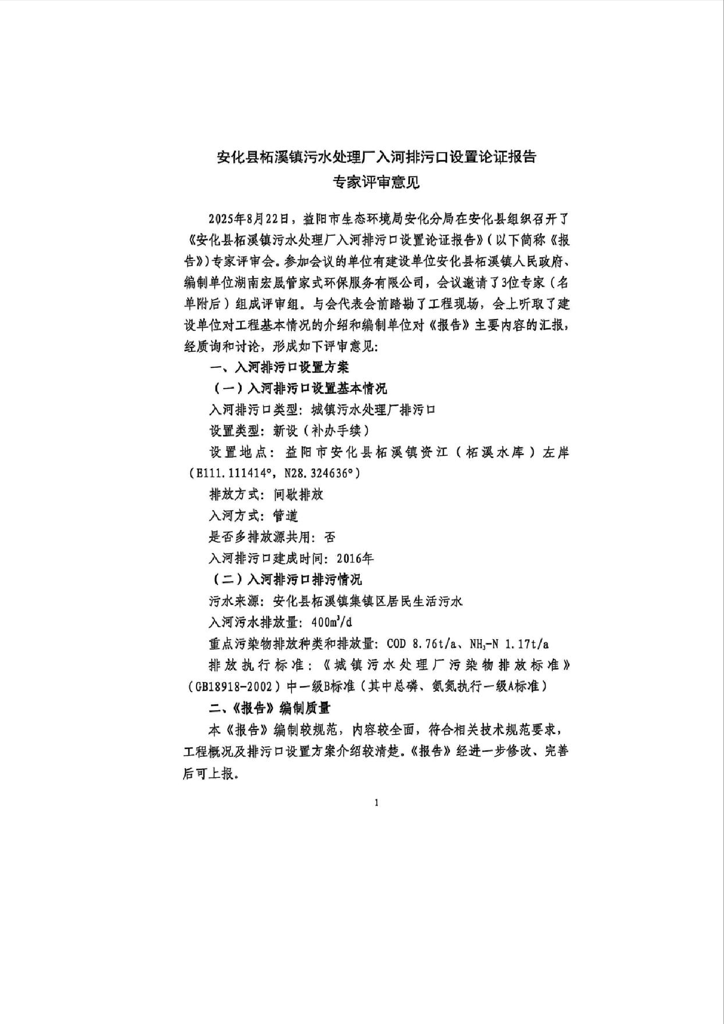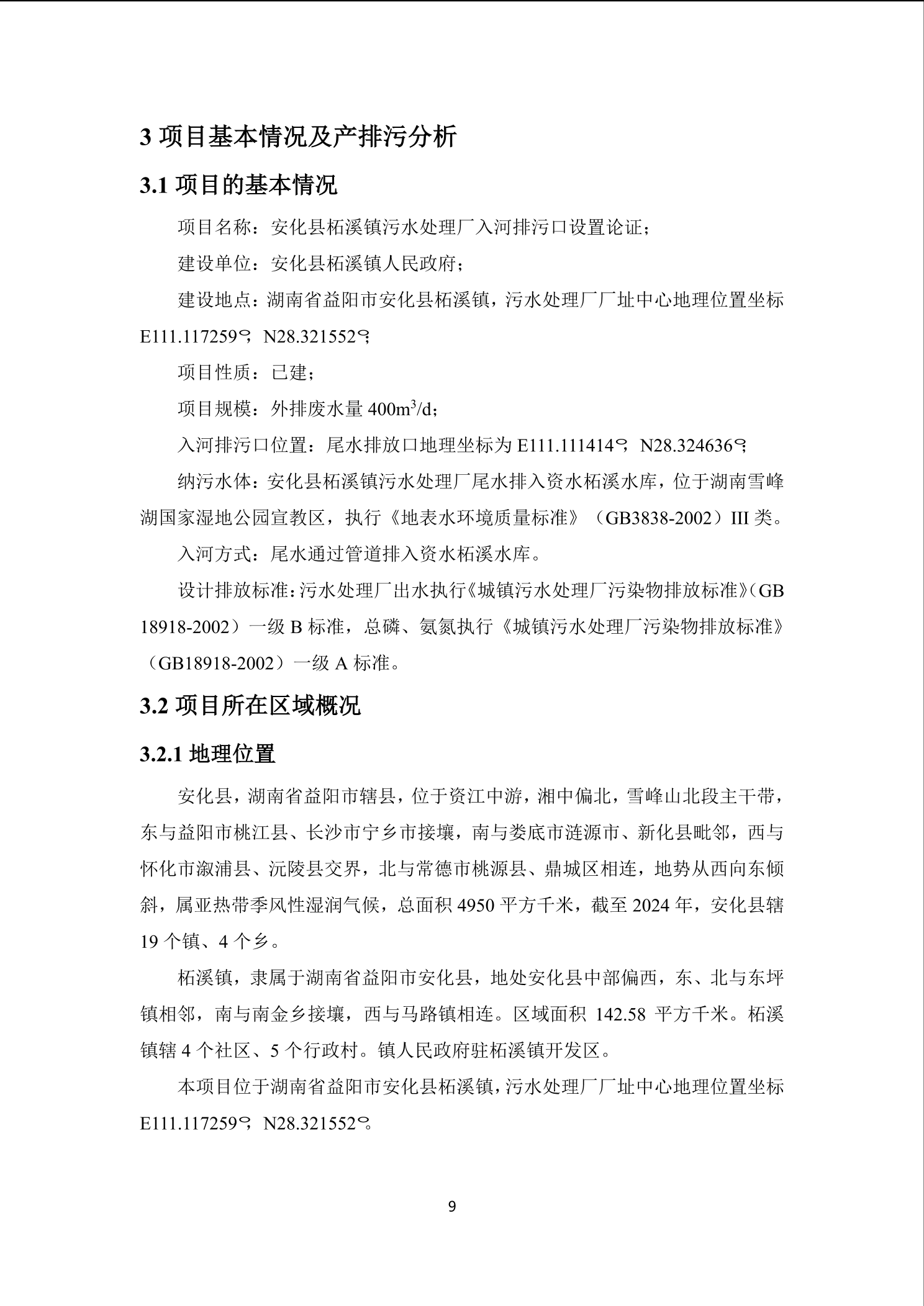 安化县柘溪镇污水处理厂入河排污口设置