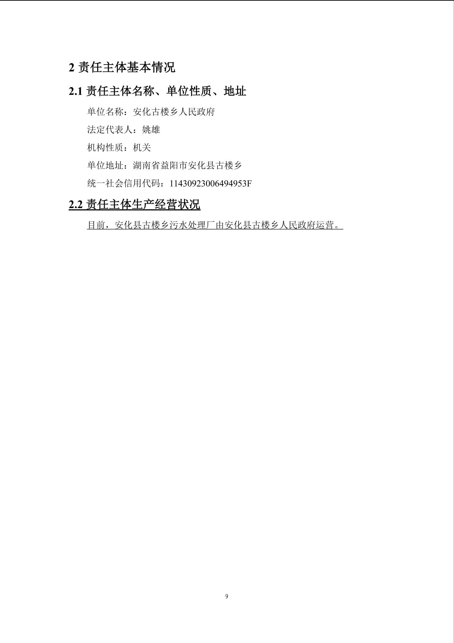 关于安化县古楼乡污水处理厂