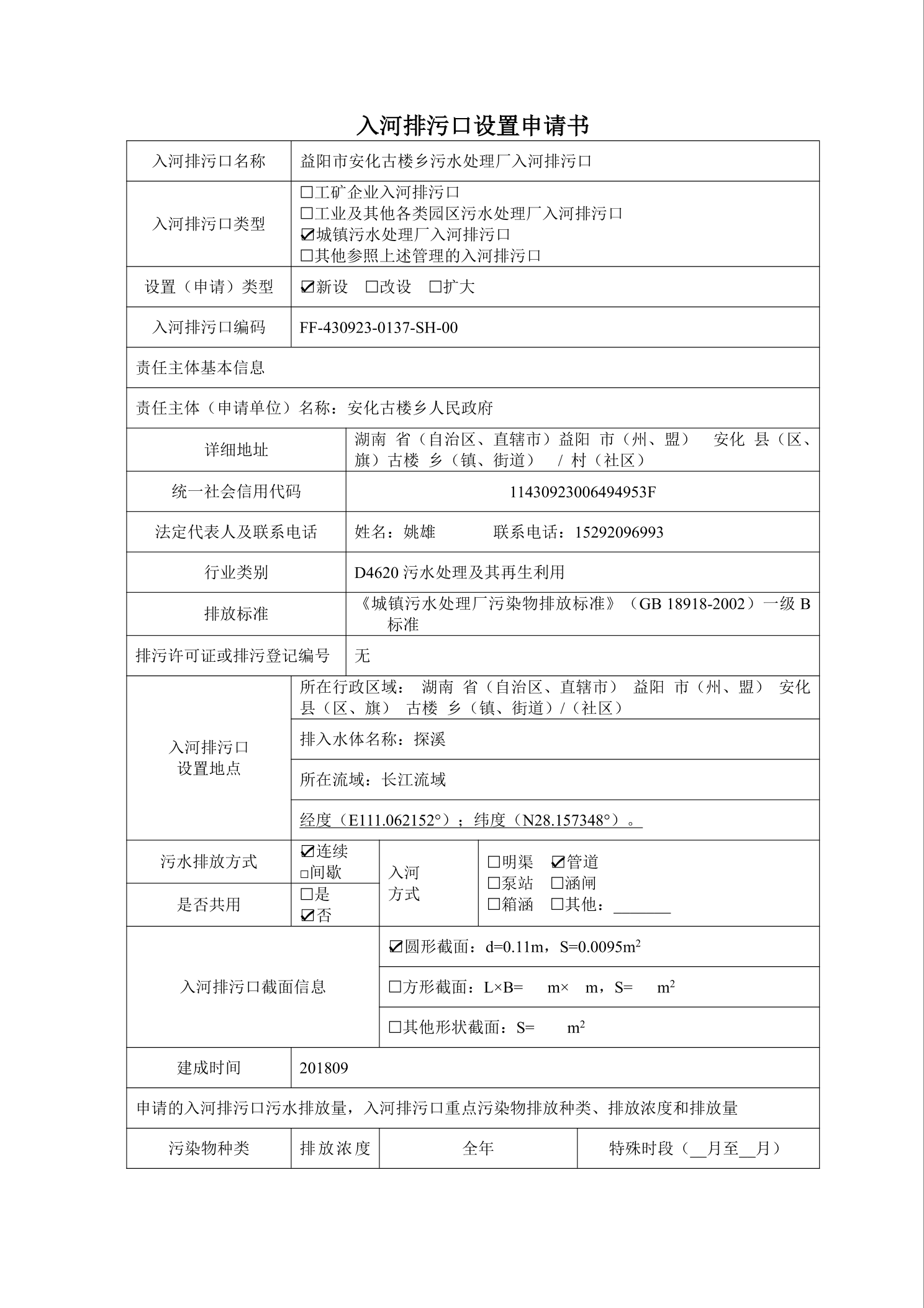 安化县古楼乡污水处理厂入河排污口设置