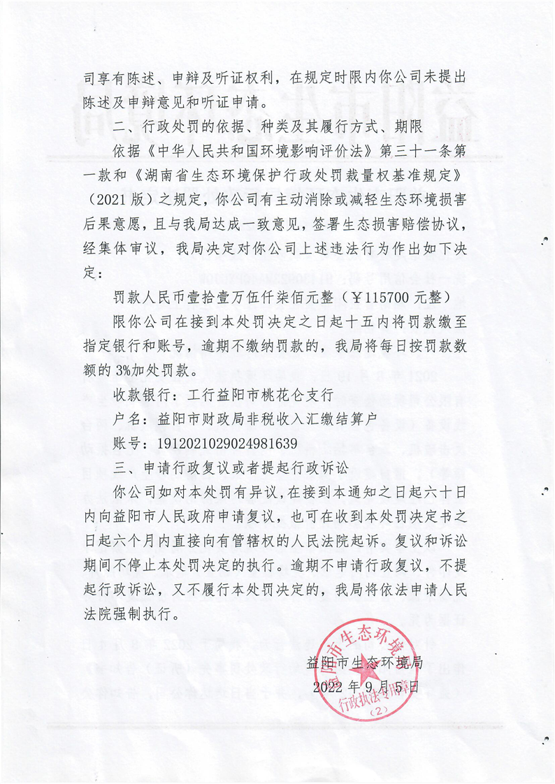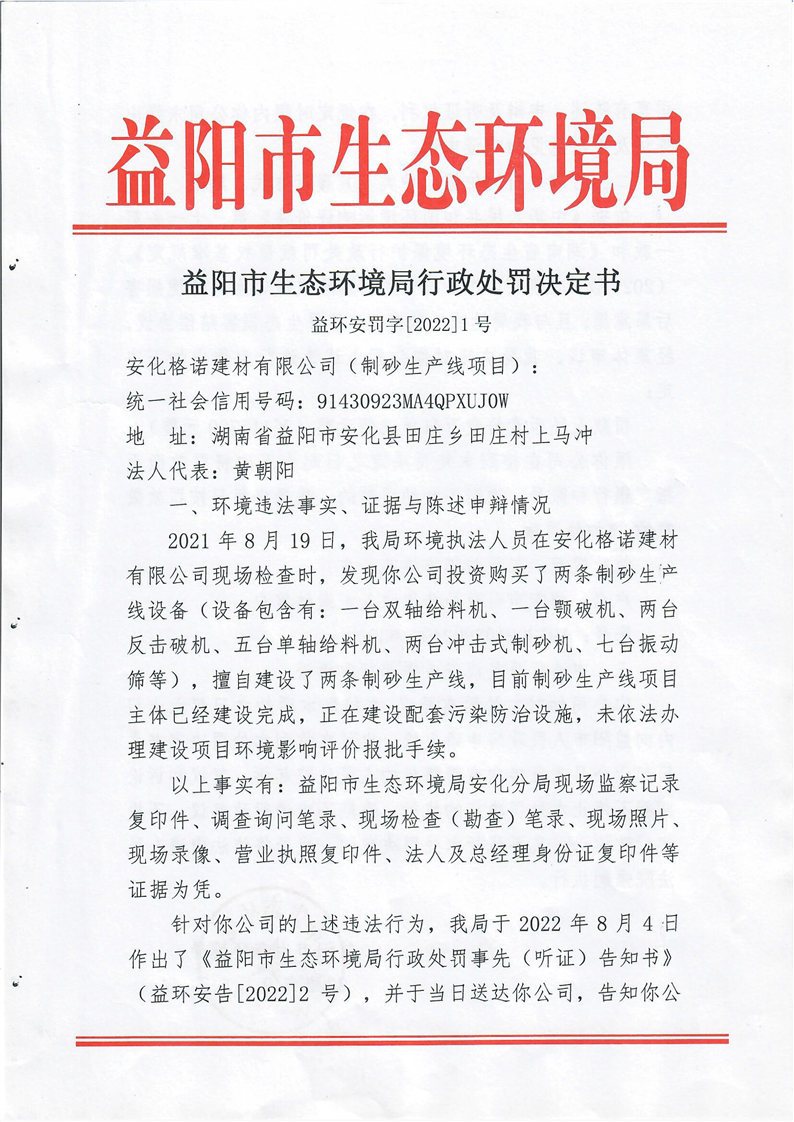 益阳市生态环境局行政处罚决定书 益环安罚字[2022]1 号