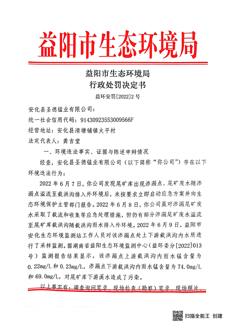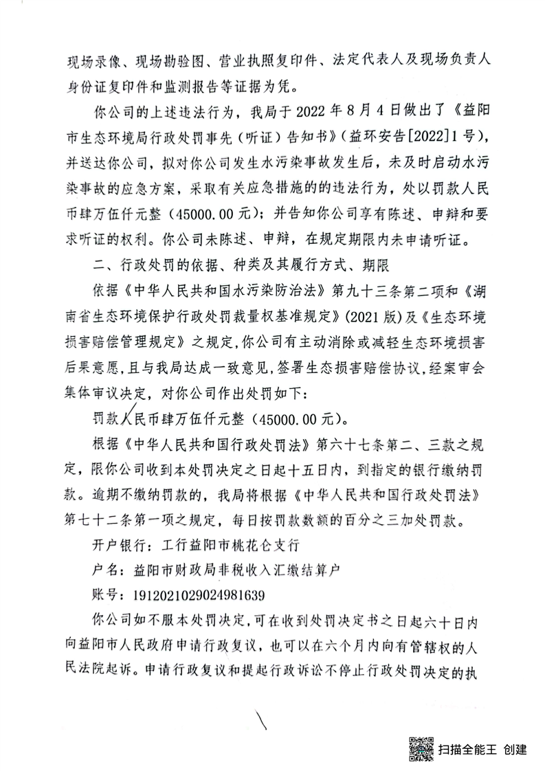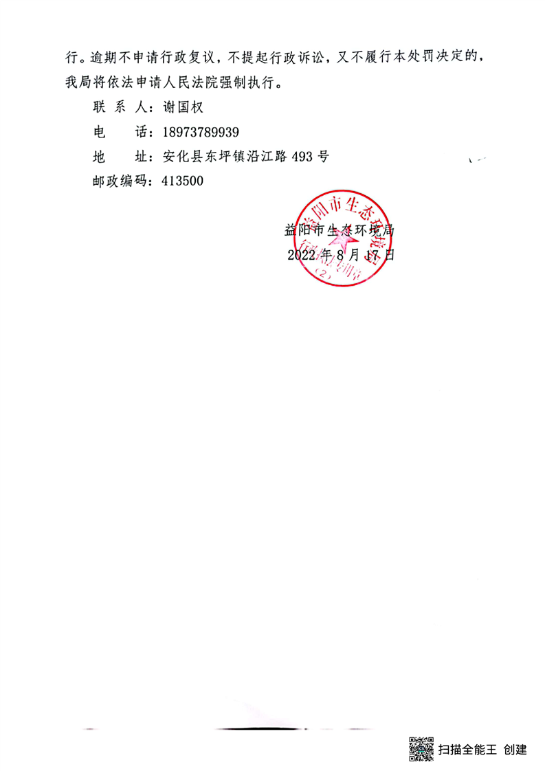 益阳市生态环境局行政处罚决定书 益环安罚[2022]2 号