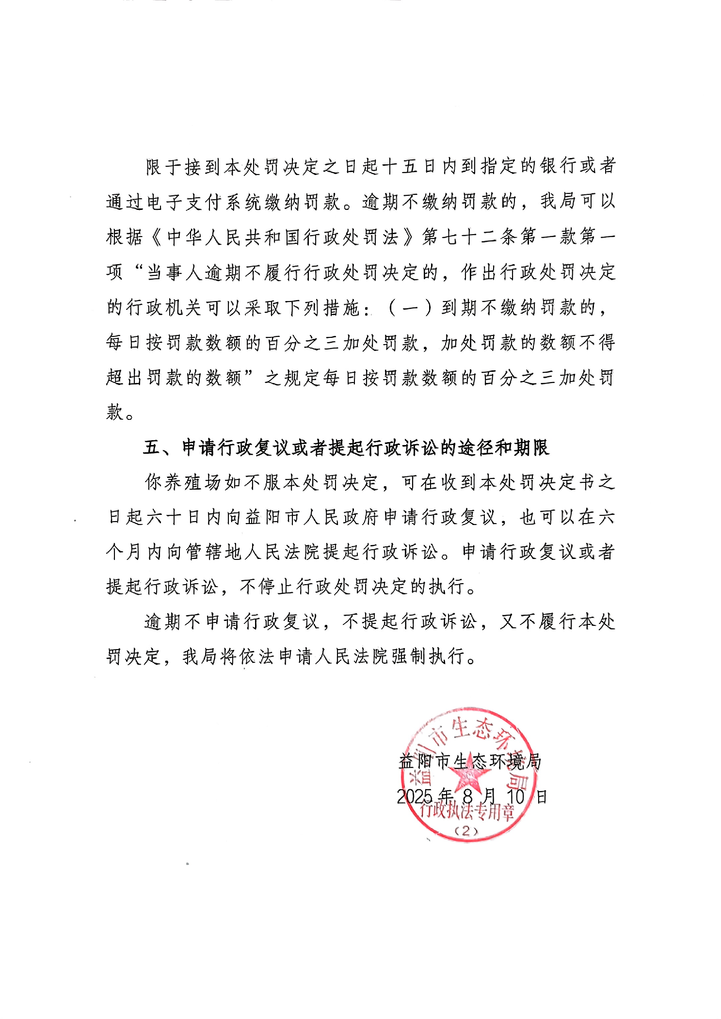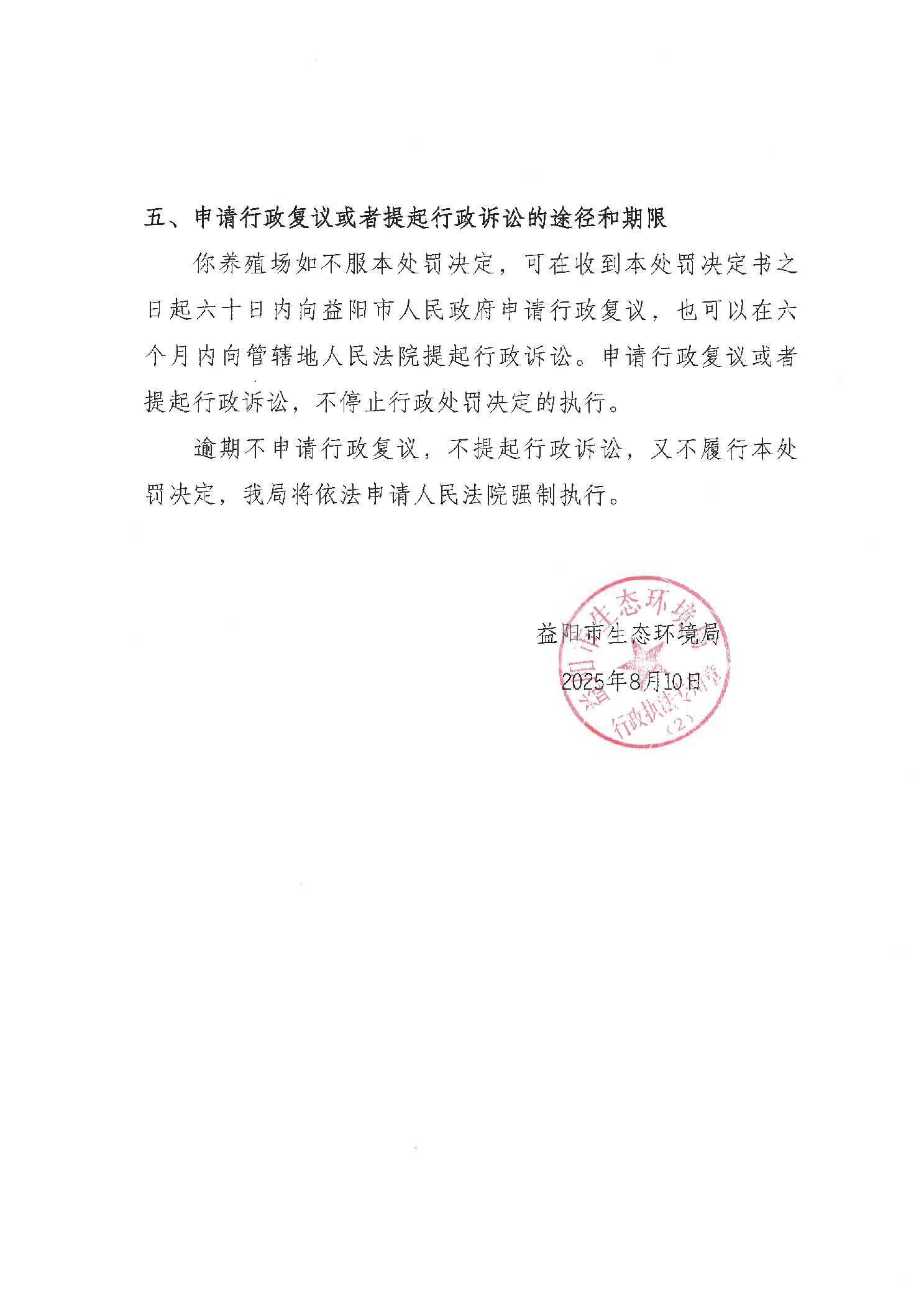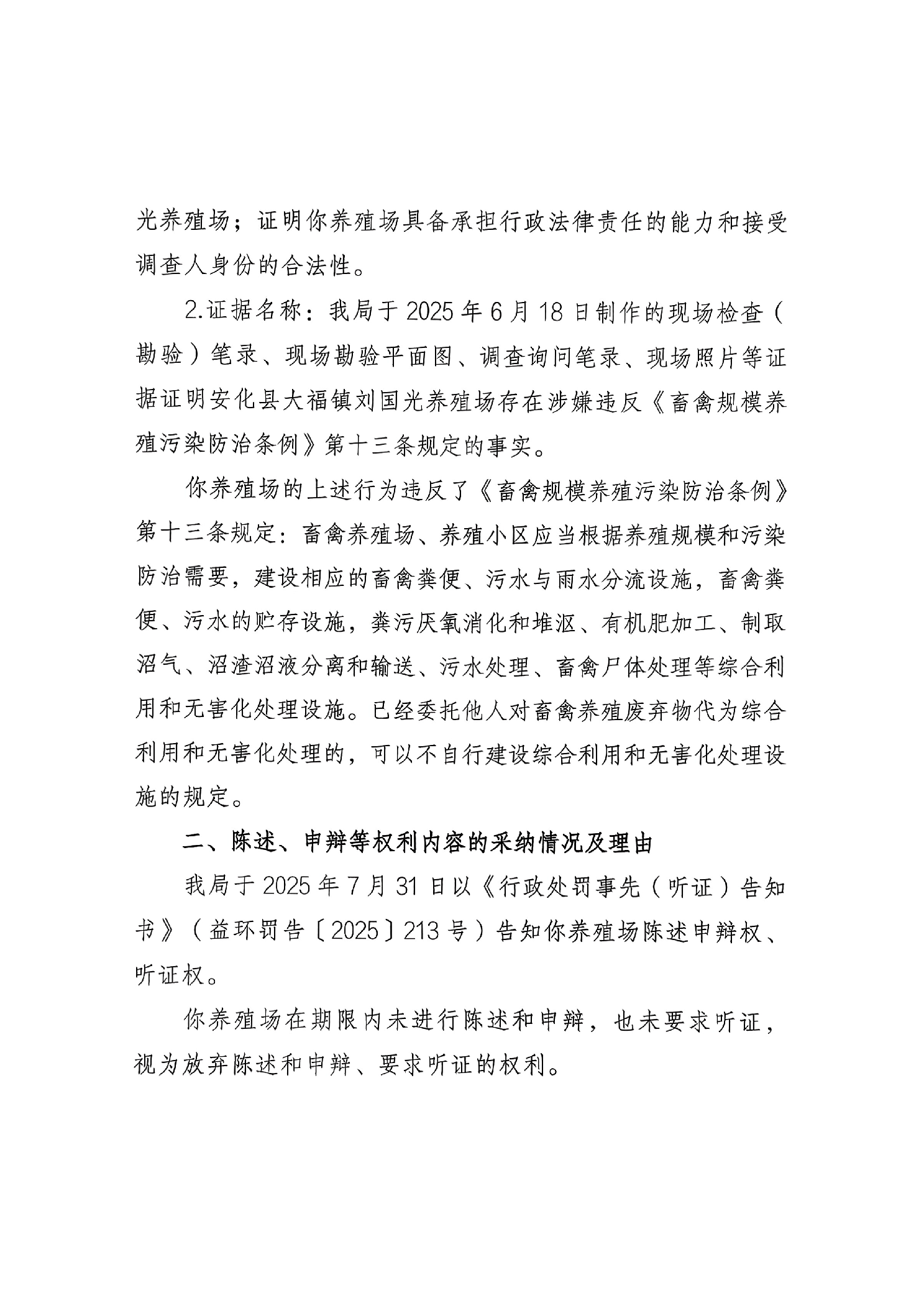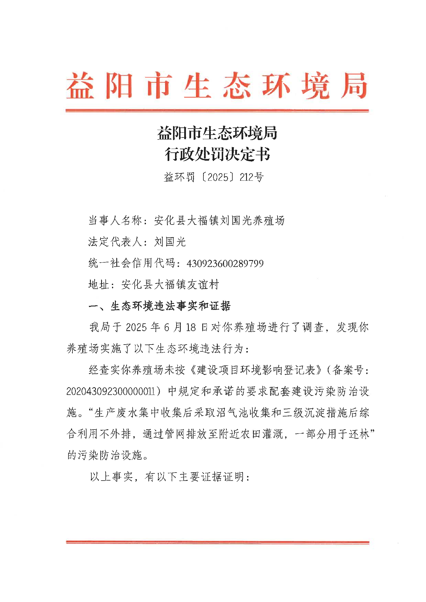 行政处罚决定书 益环罚字【2025】212号 安化县大福镇刘国光养殖场