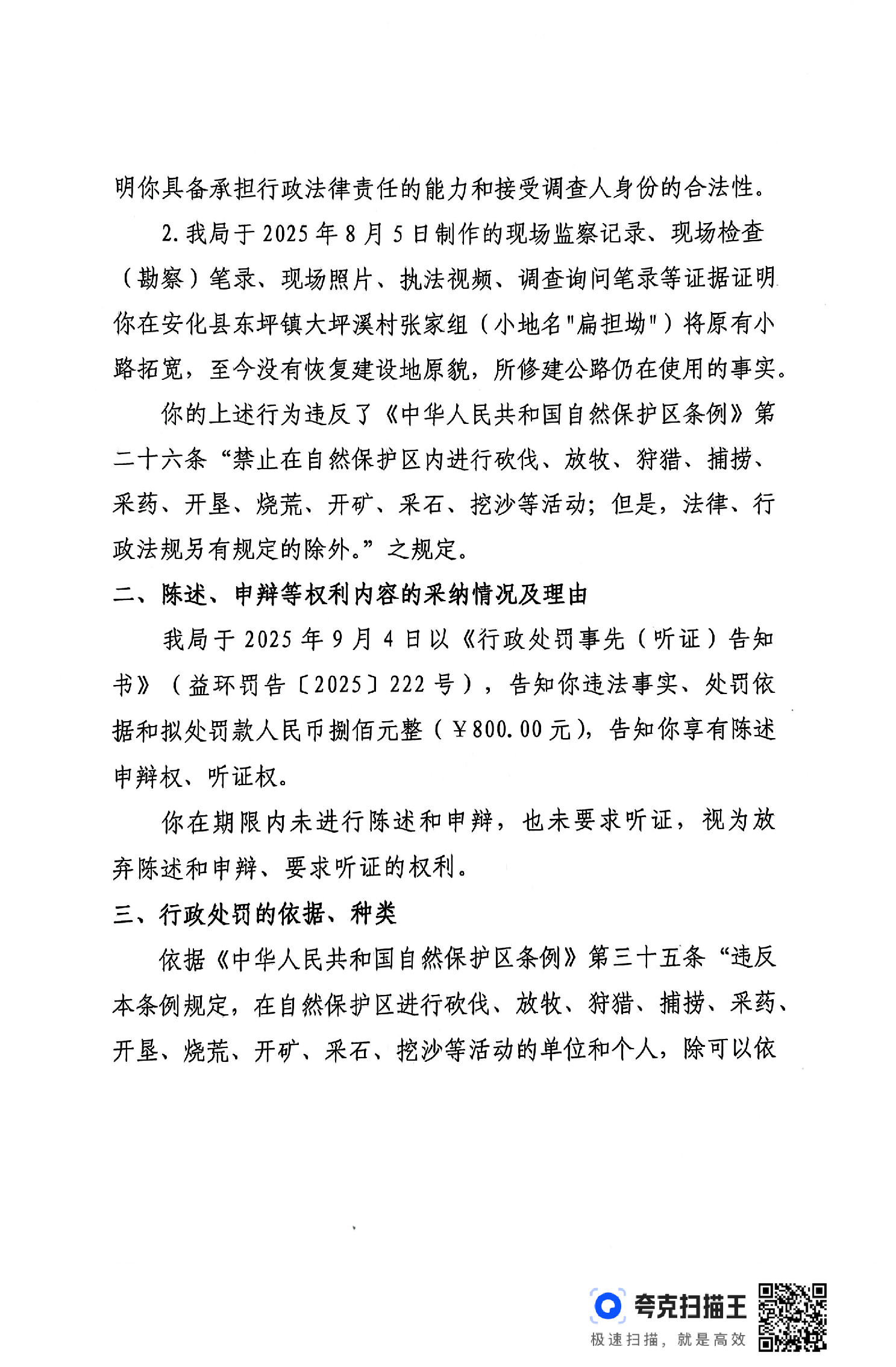 行政处罚决定书 益环罚字【2025】221号 张稳岩