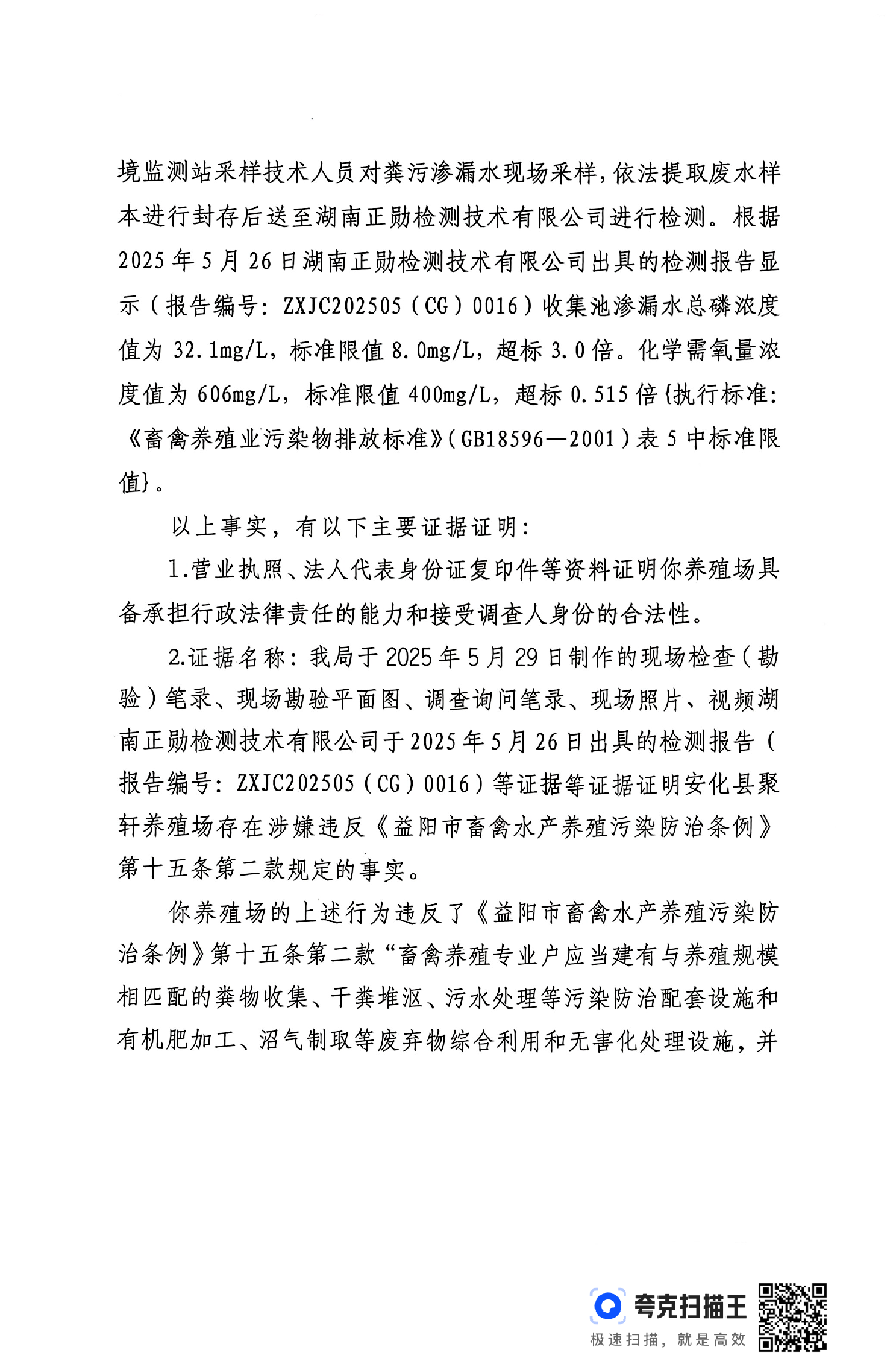 行政处罚决定书 益环罚字【2025】224号 安化县思全养殖场