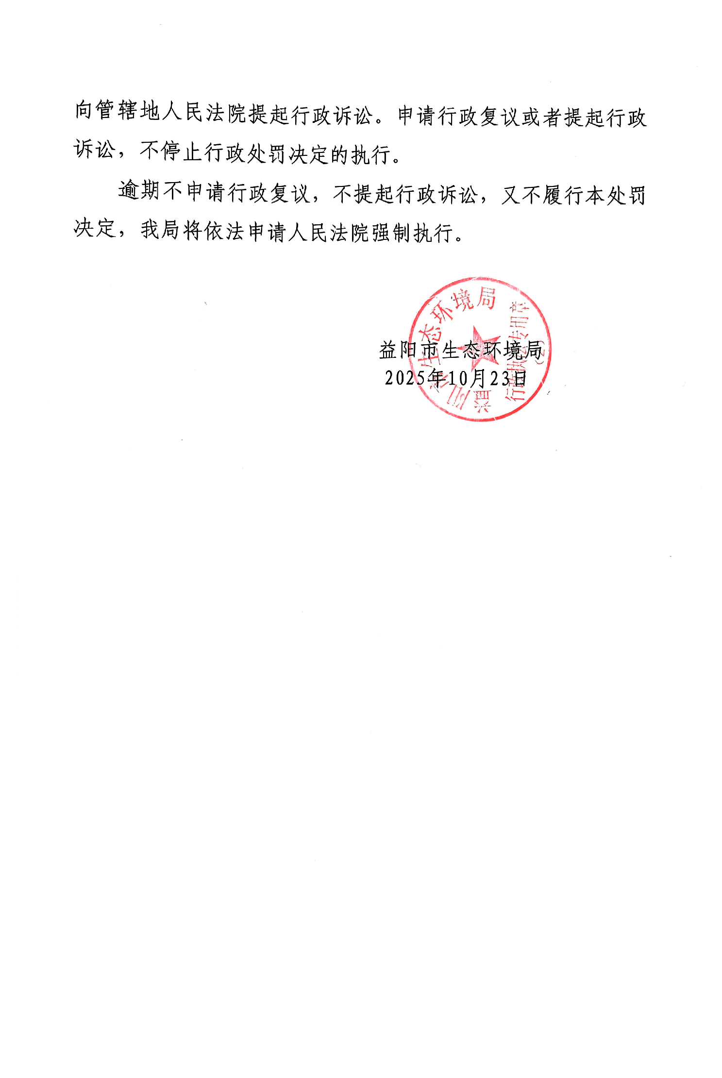 行政处罚决定书 益环罚字【2025】226号 安化县圣德锰业有限公司