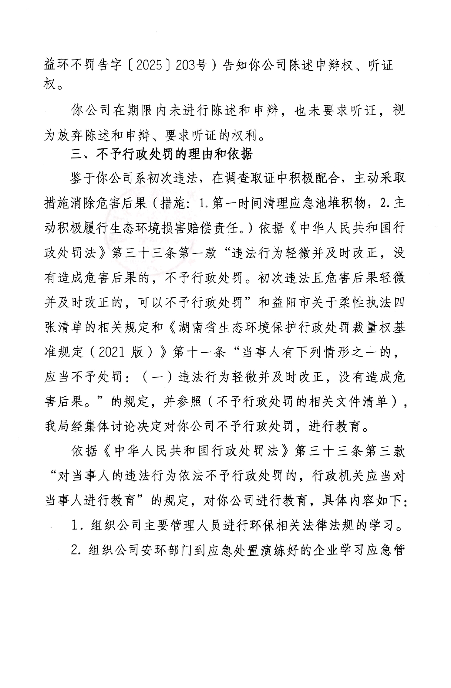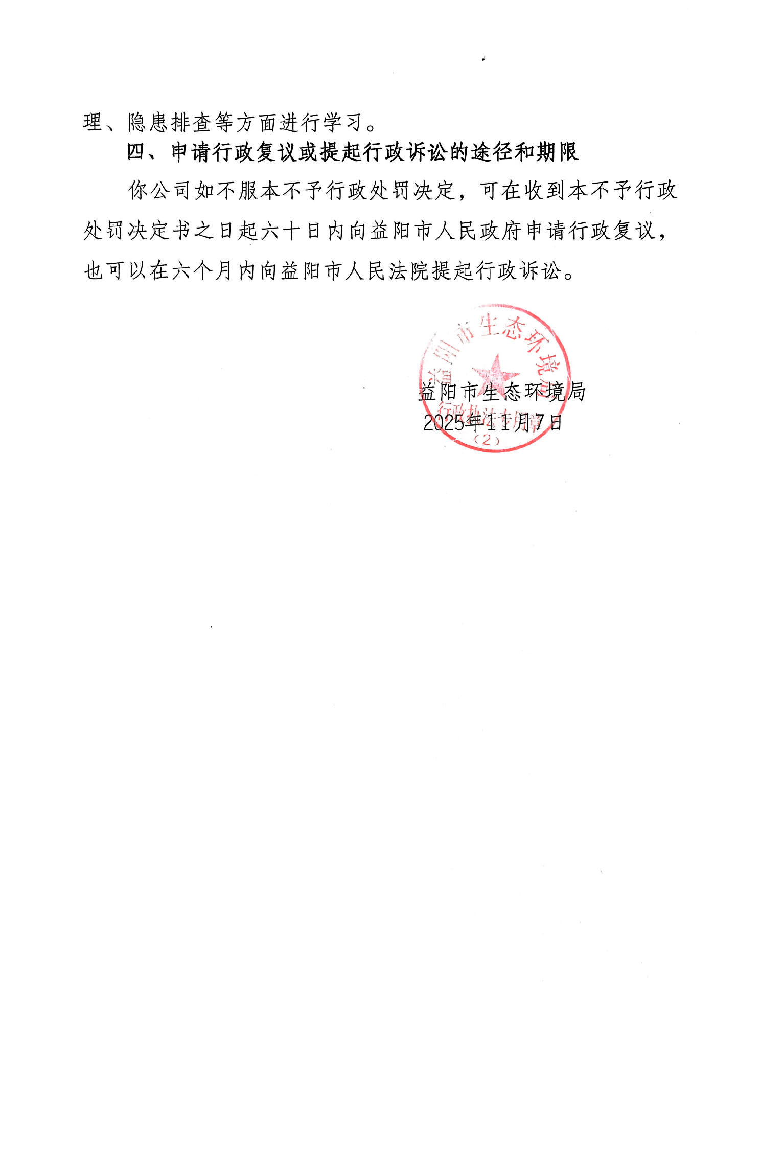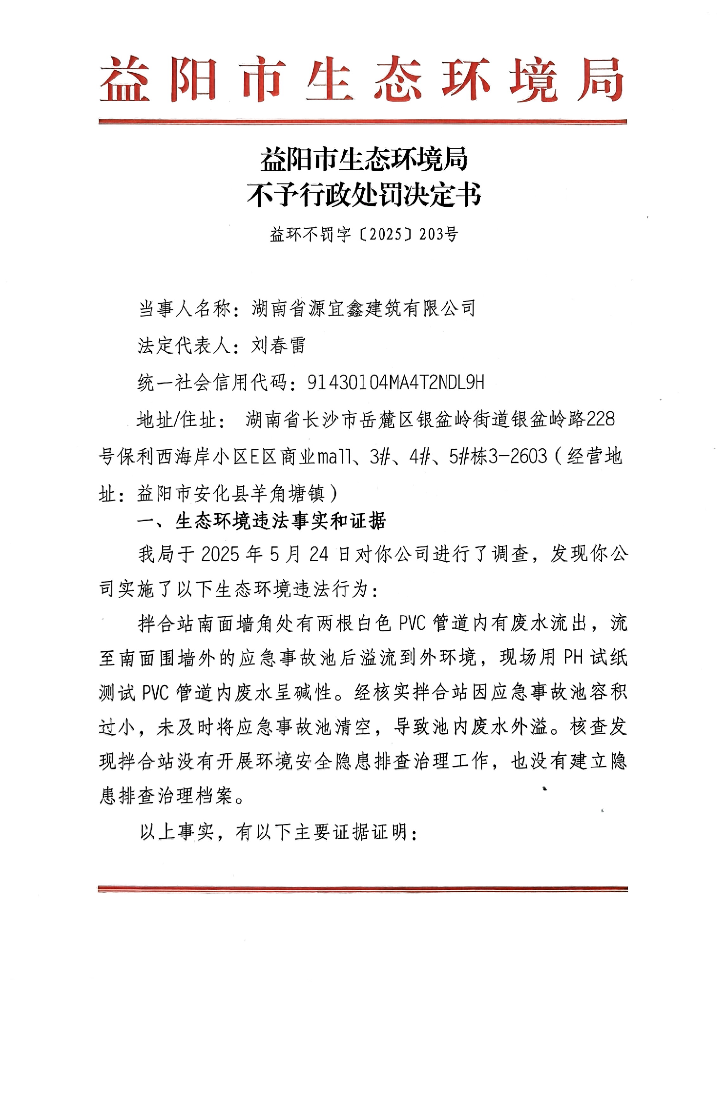 不予行政处罚决定书 益环不罚字【2025】203号 源宜鑫建筑有限公司