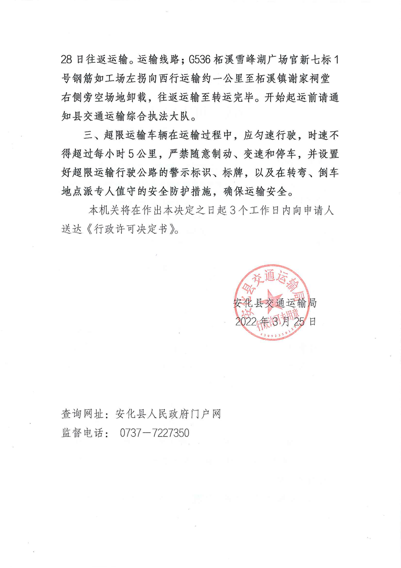 安化县交通运输局行政许可决定书 安交许决字[2022]04号