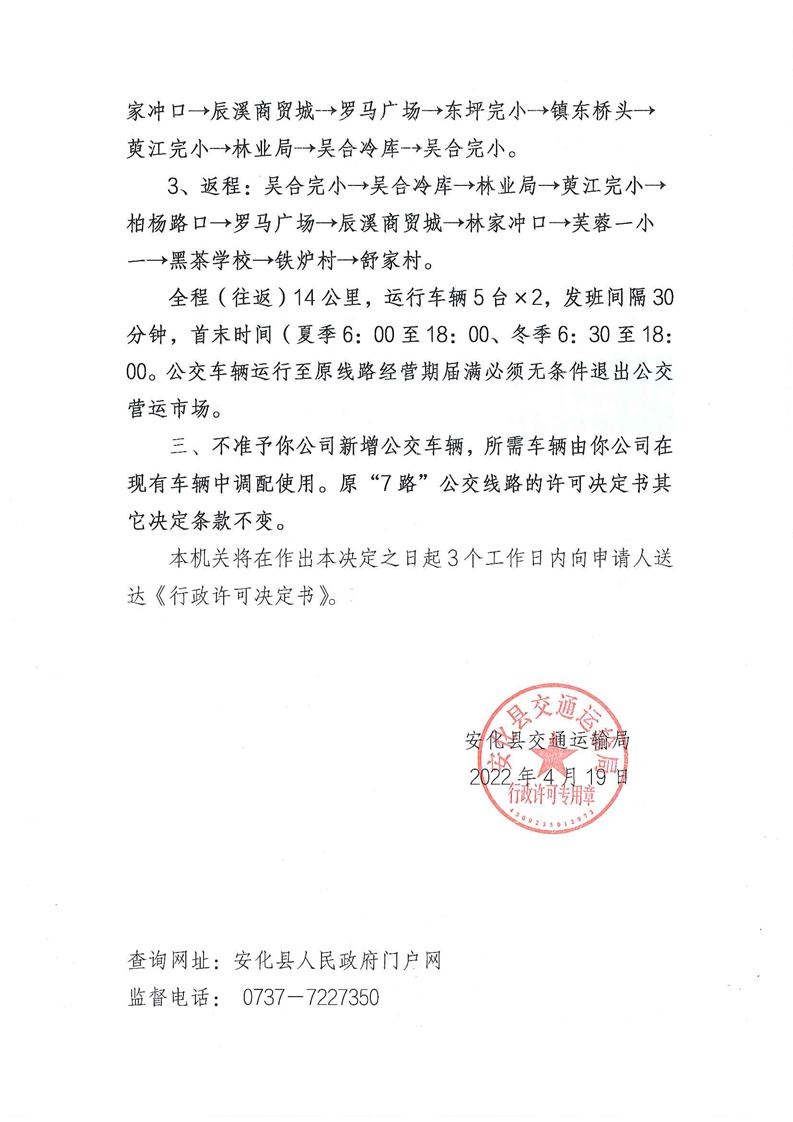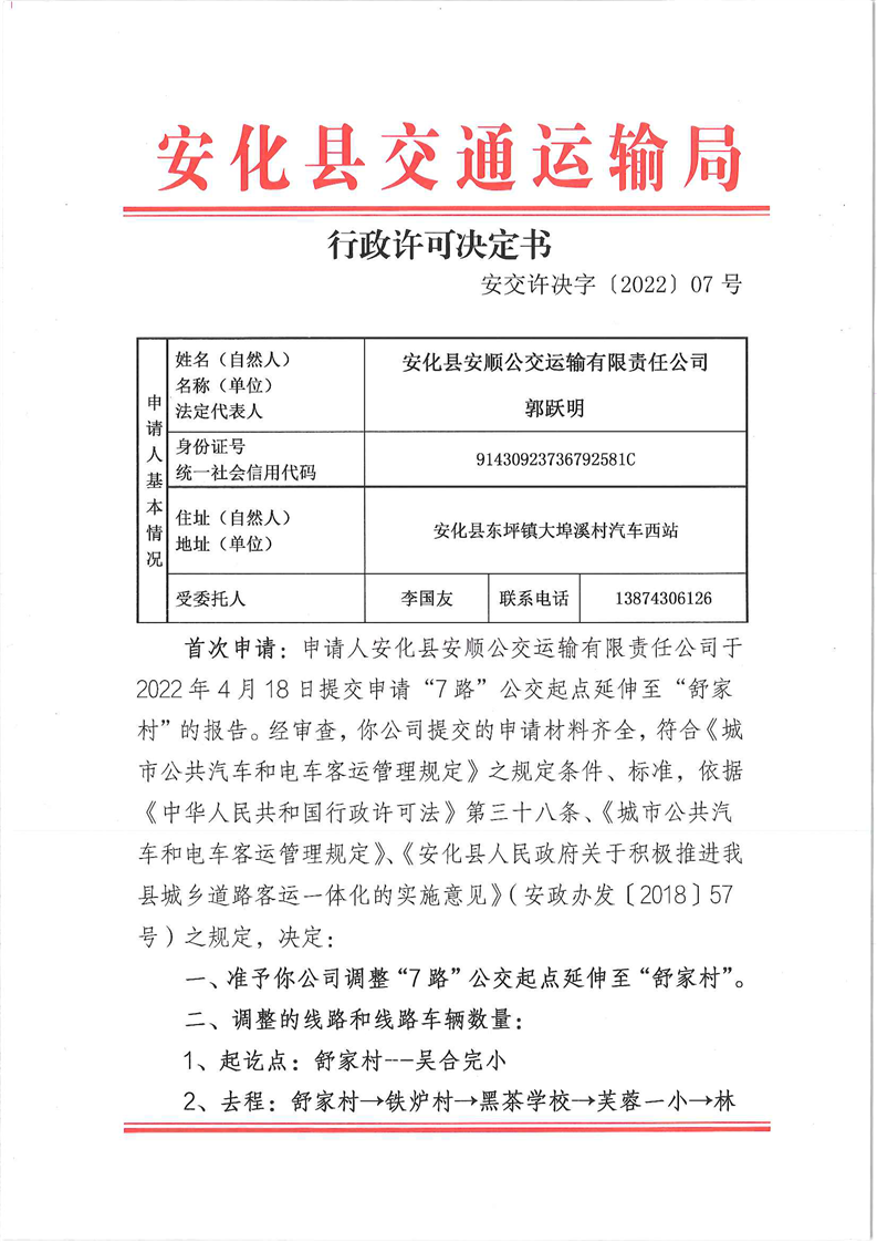 行政许可决定书 安交许决字〔2022〕07号