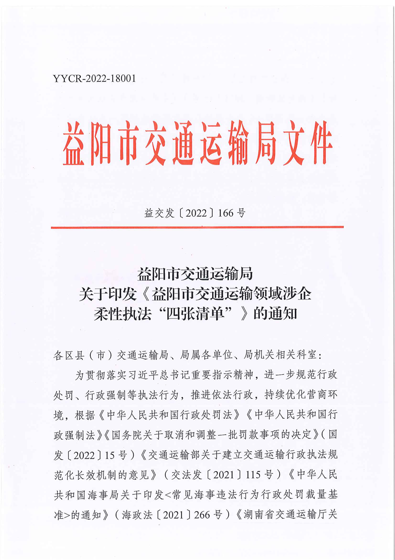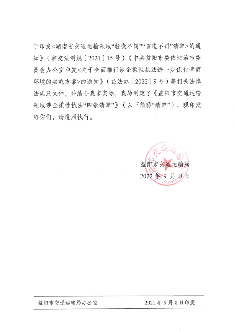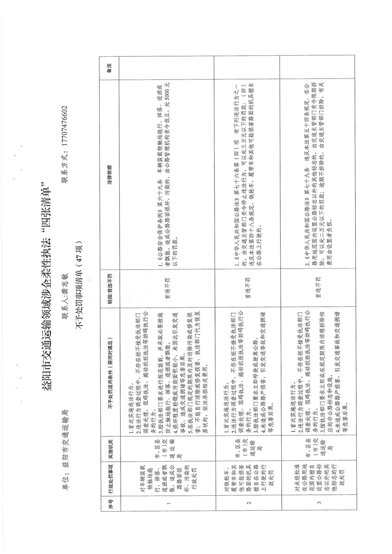 益阳市交通运输领域涉企柔性执法“四张清单”
