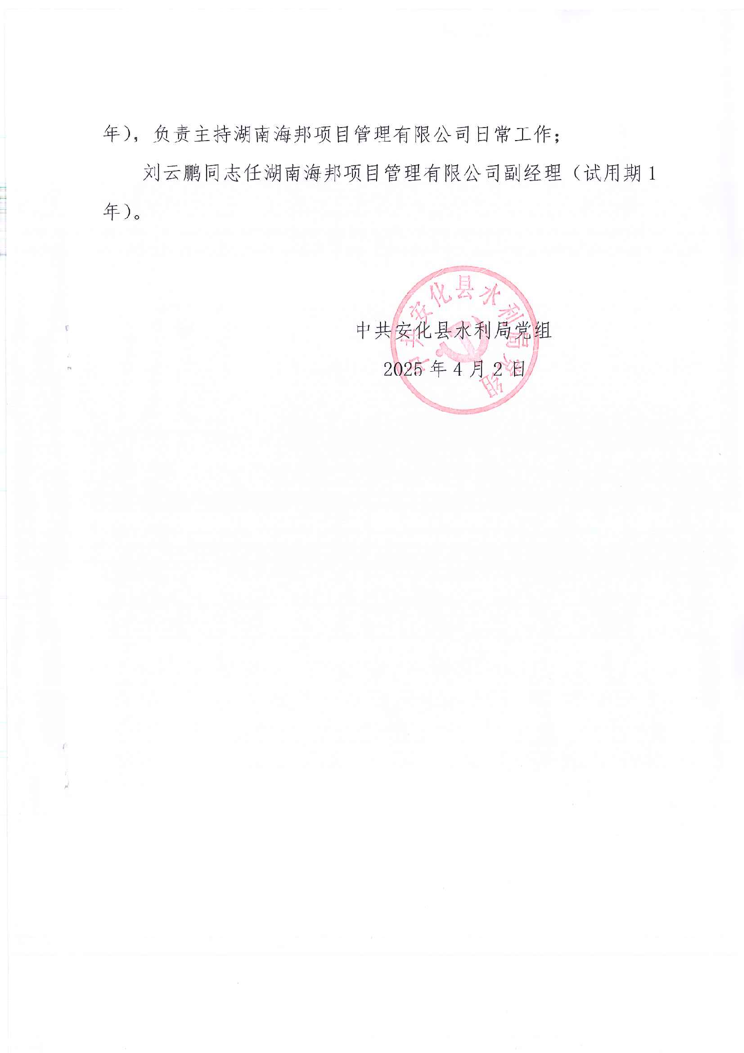 作者:组织人事股 发布时间:2025-05-19 信息来源: 安化县水利局 浏览数: