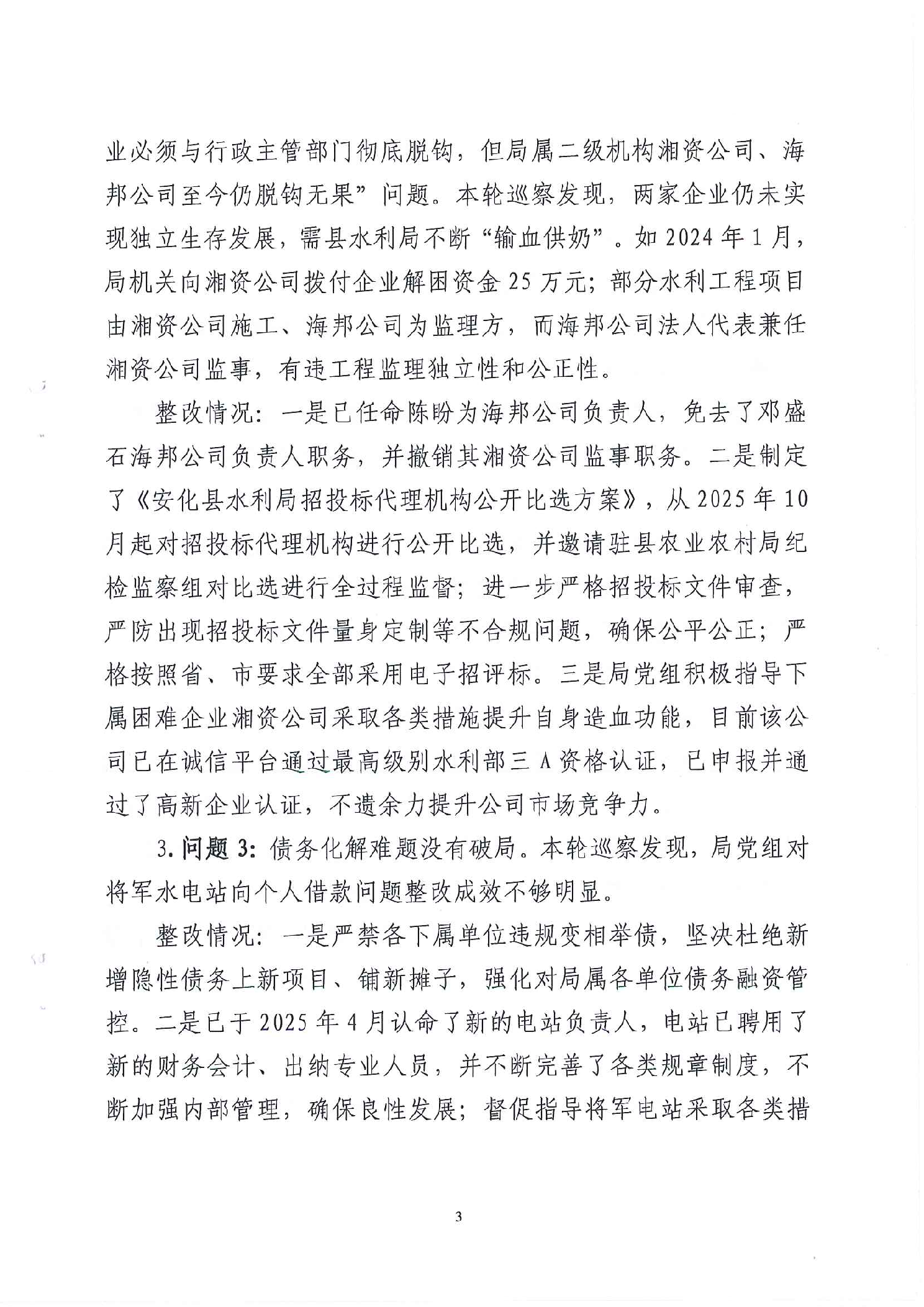 中共安化县水利局党组关于县委巡察“回头看”整改进展情况的通报(向社会公开稿)