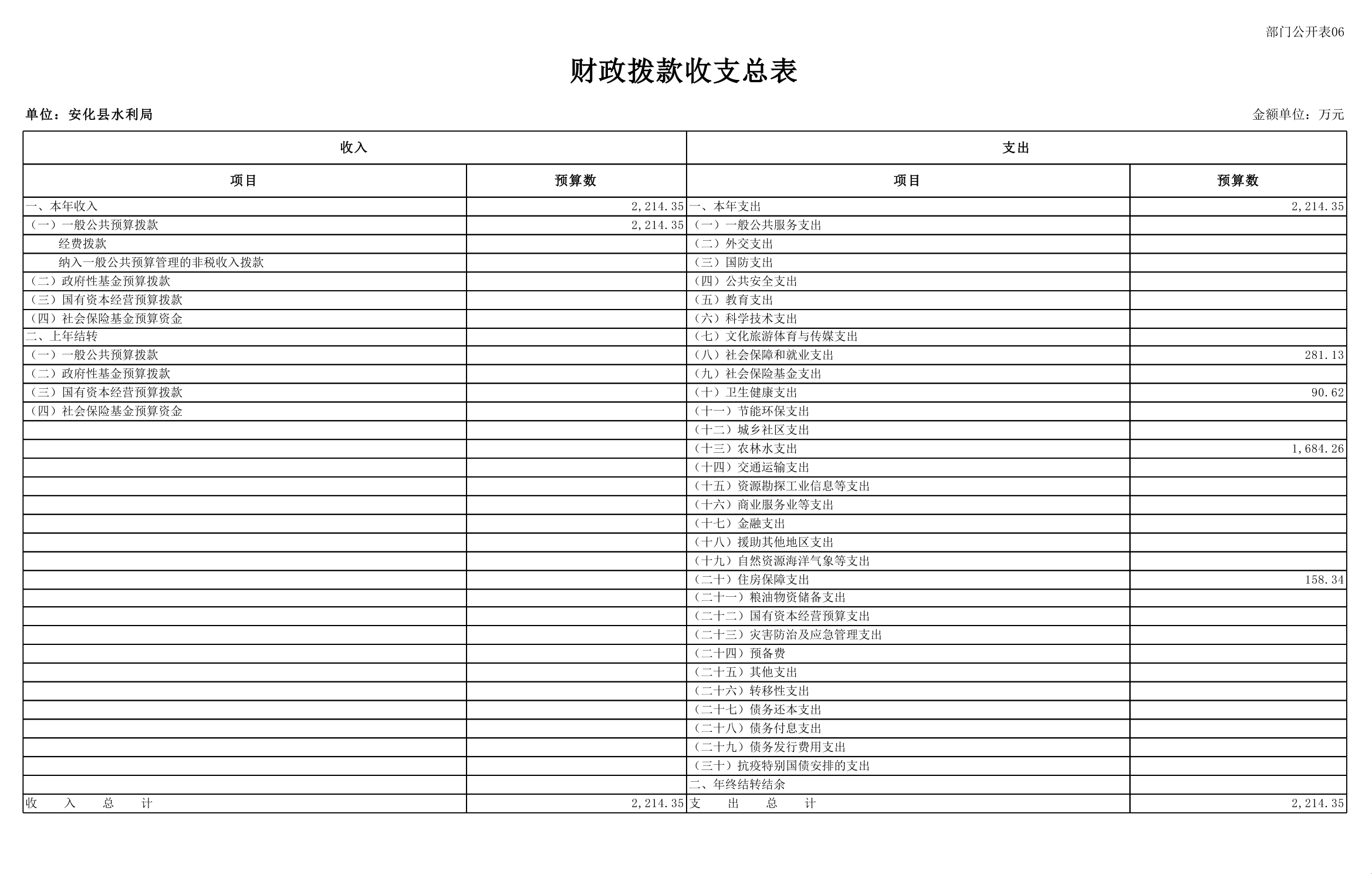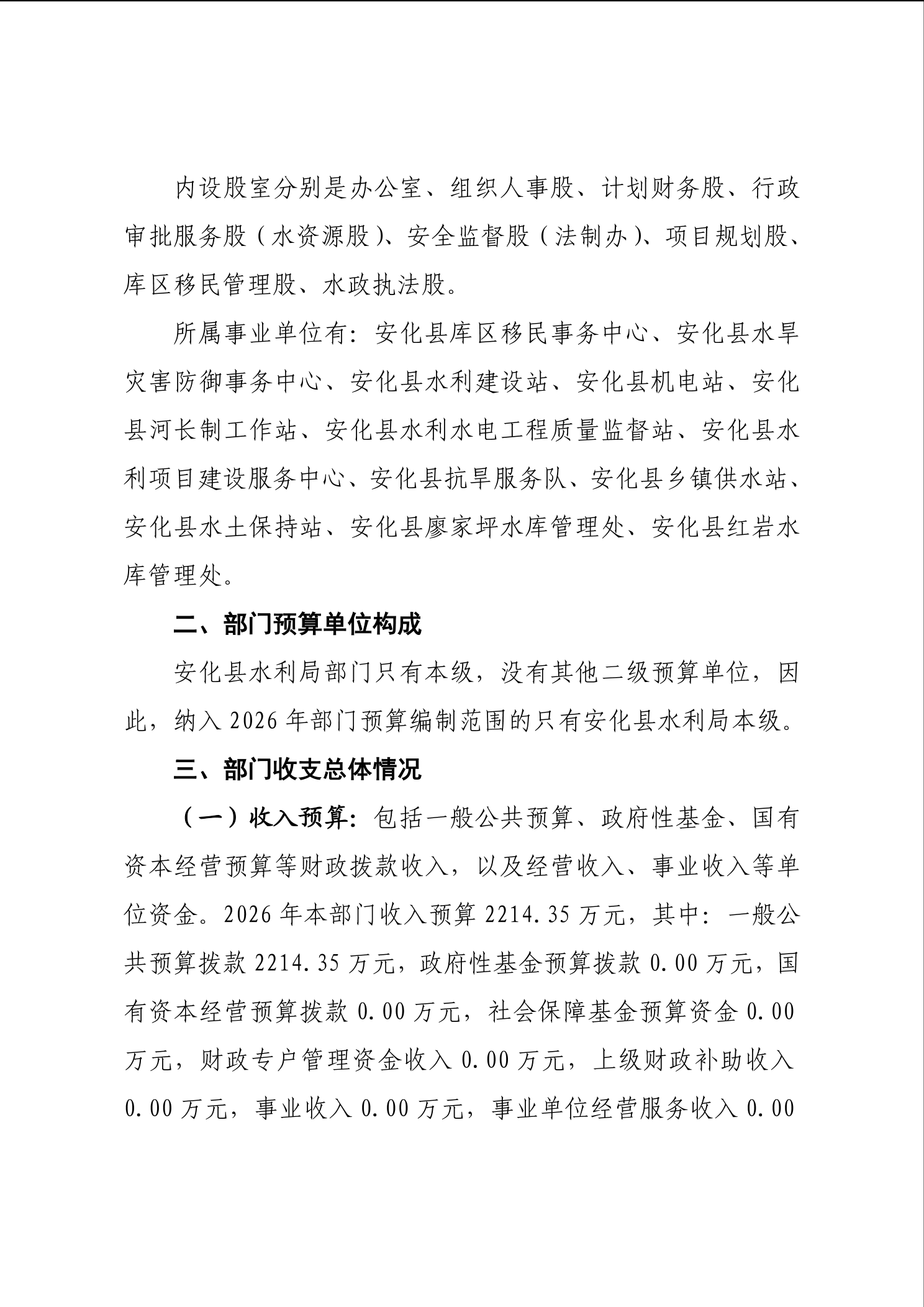 2026年安化县水利局部门预算公开