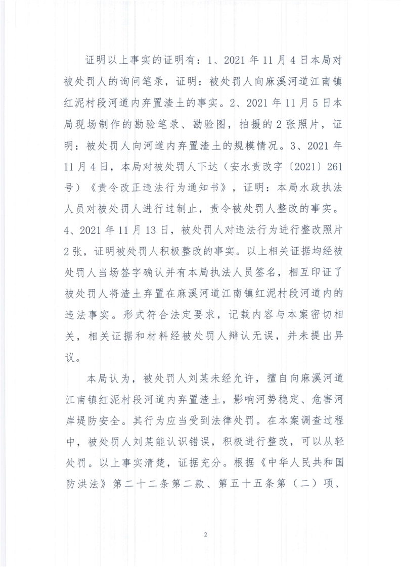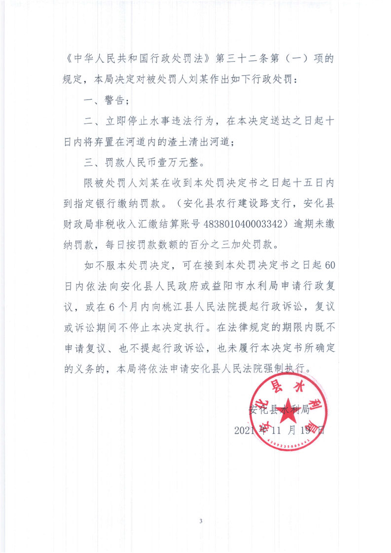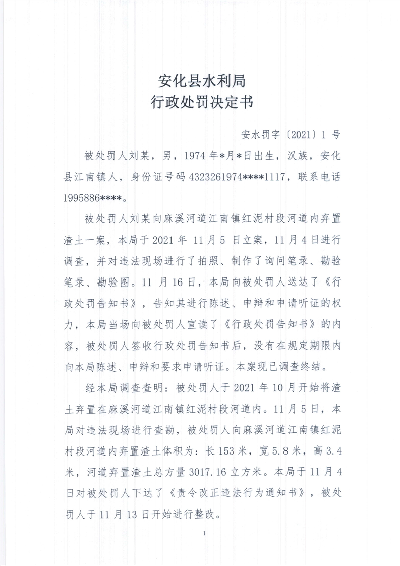 安化县水利局行政处罚决定书(安水罚字【2021】1号)