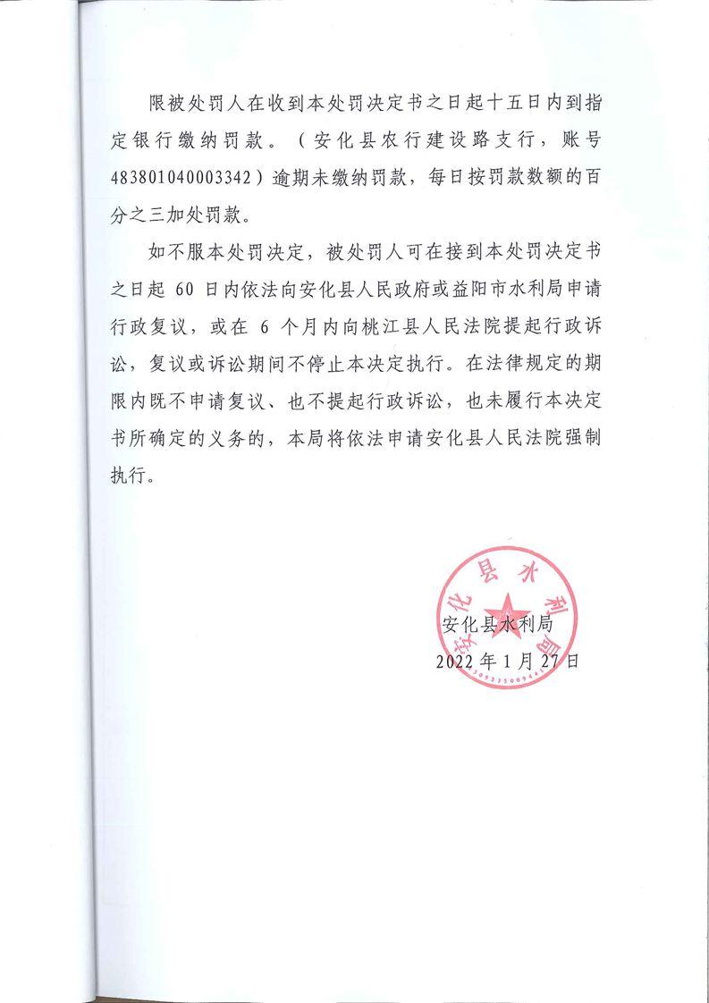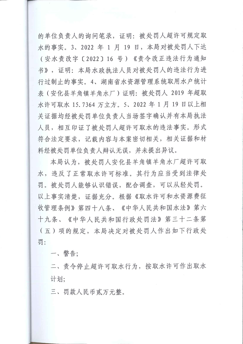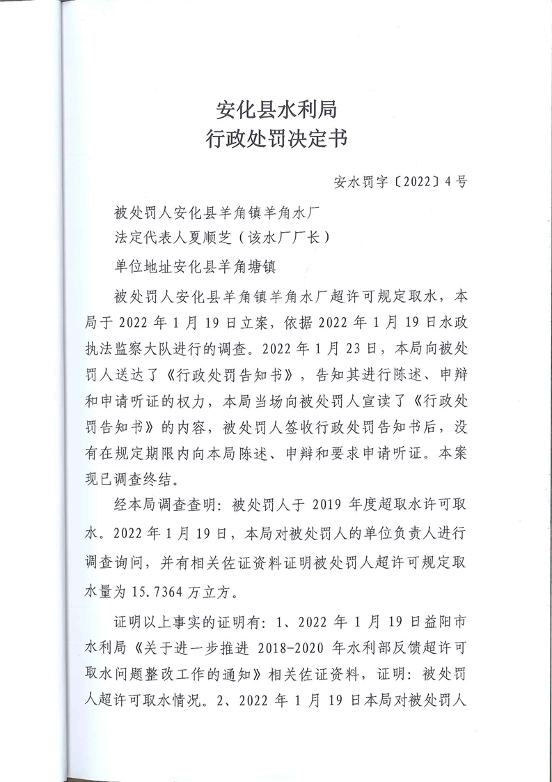 安水罚字〔2022〕4号 安化县羊角镇羊角水厂